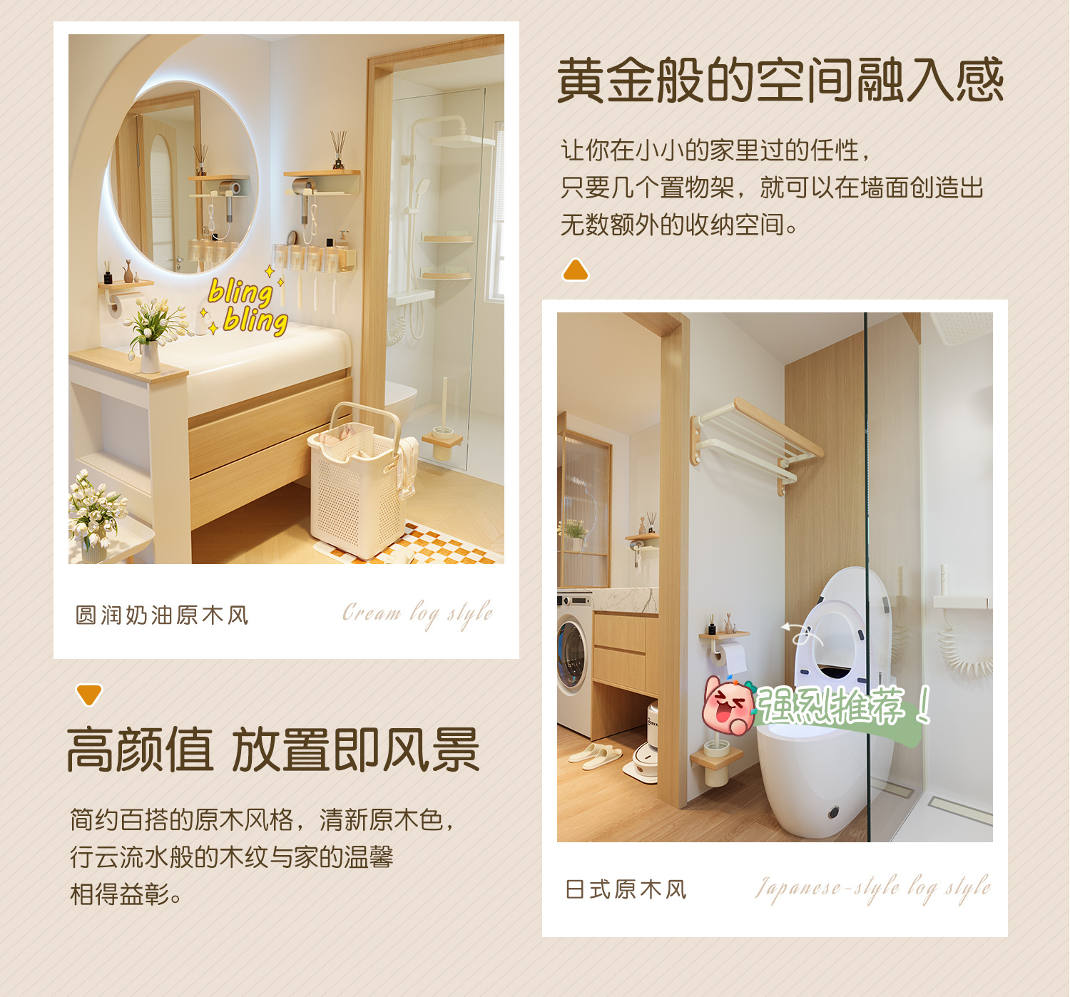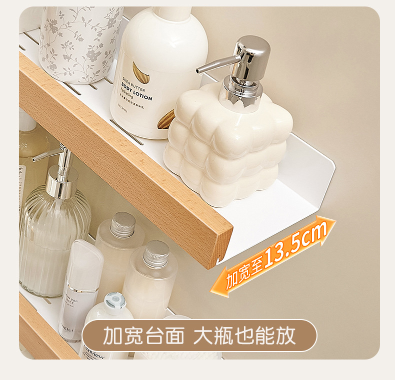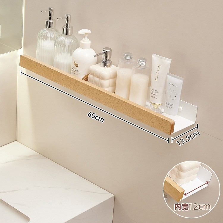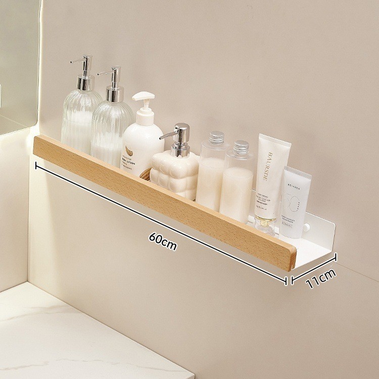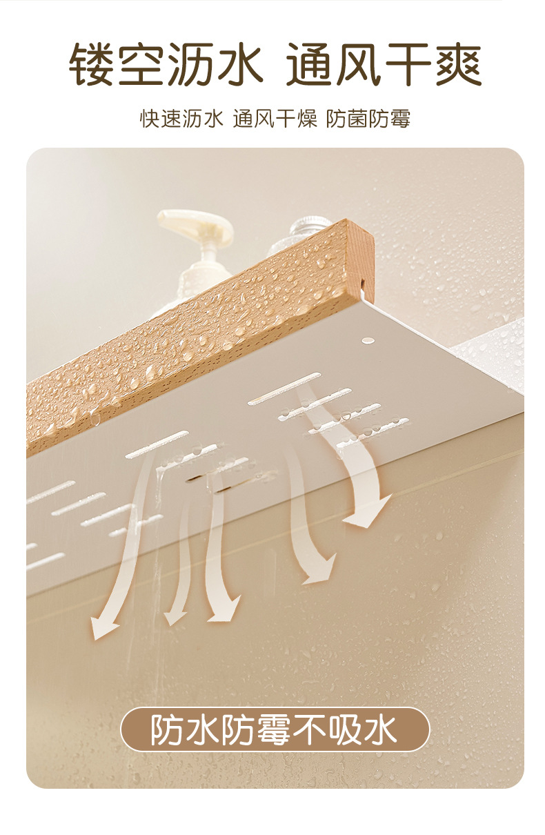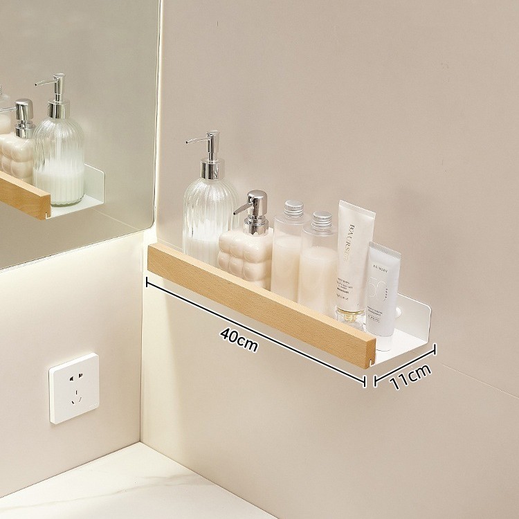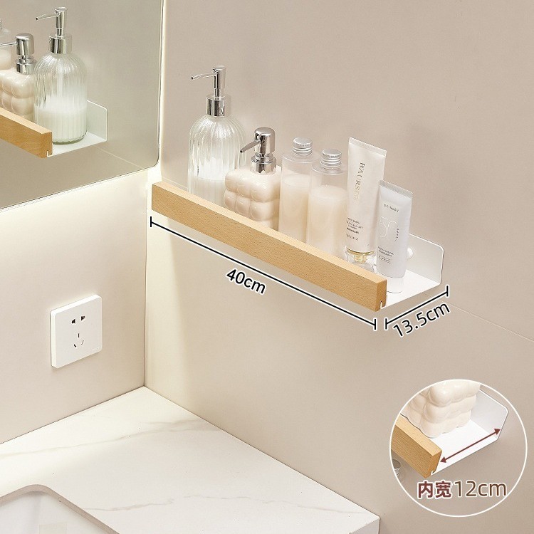 크림색 욕실 수납 선반, 세면대 무타공 벽걸이형 욕실 수건걸이