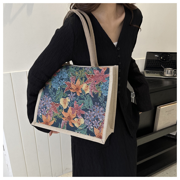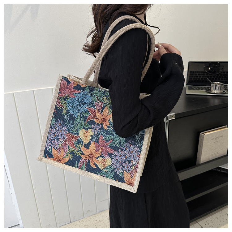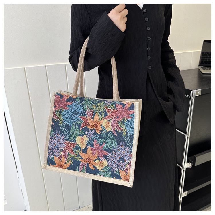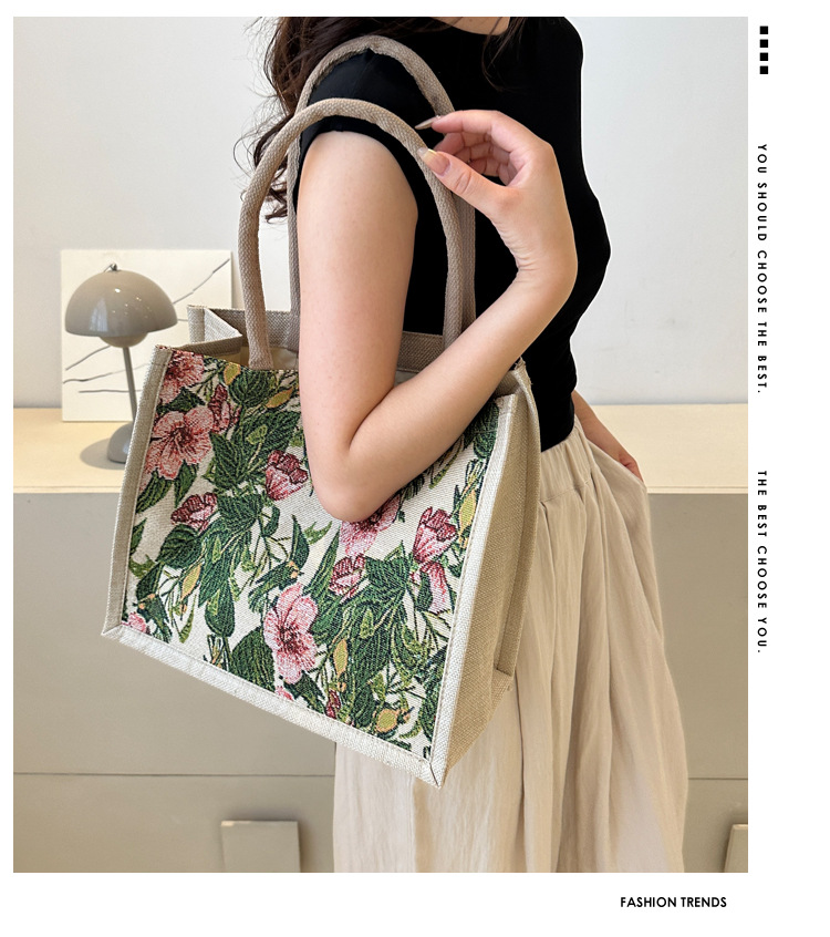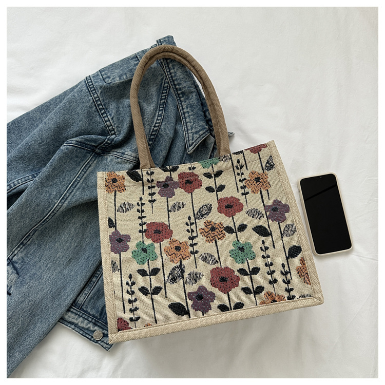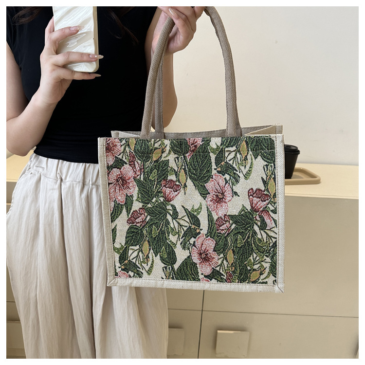 귀여운 인 핸드백 새로운 스타일 면 및 린넨 대용량 작업 도시락 가방 인쇄 숄더 토트 여성용 캔버스 가방