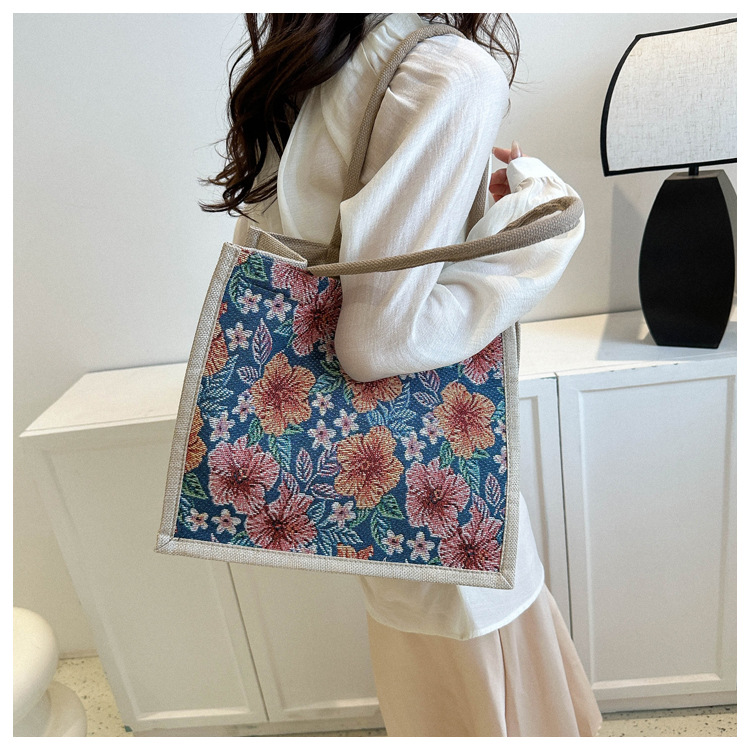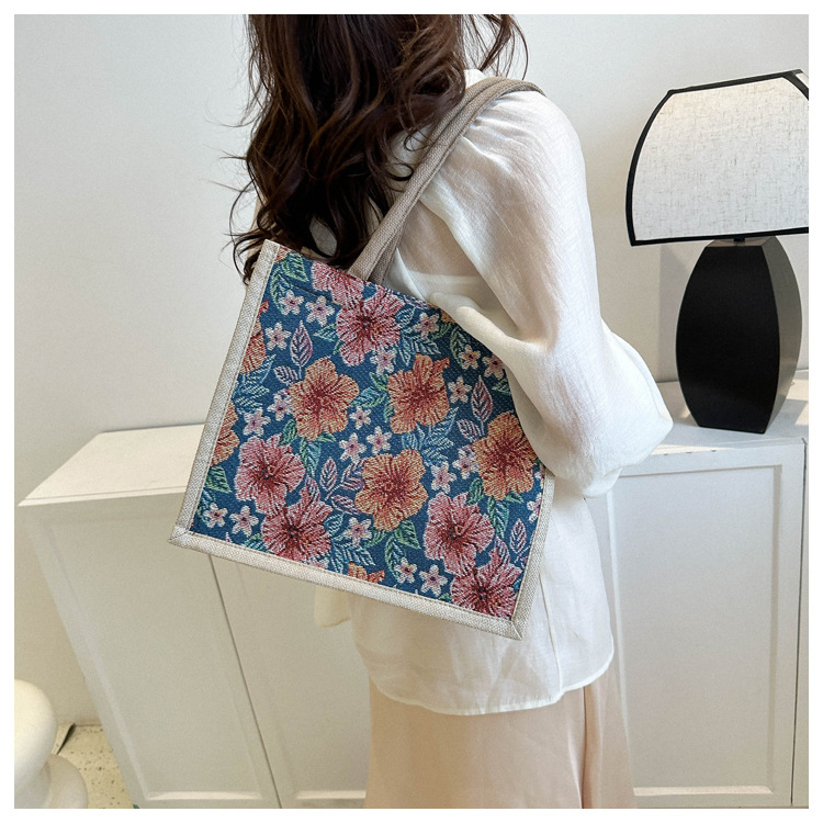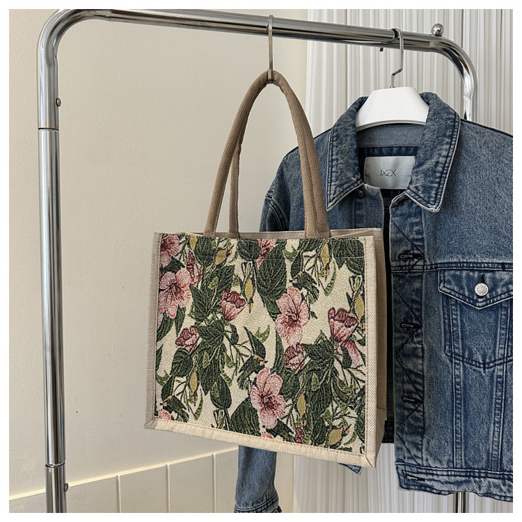 귀여운 인 핸드백 새로운 스타일 면 및 린넨 대용량 작업 도시락 가방 인쇄 숄더 토트 여성용 캔버스 가방스토어 가기