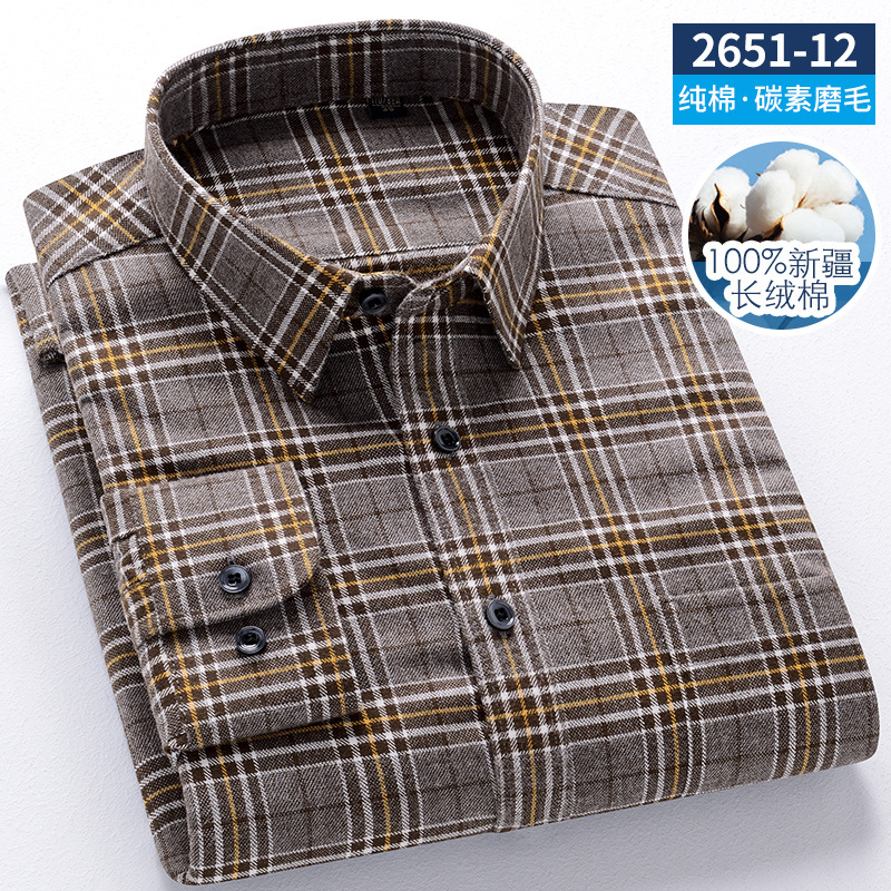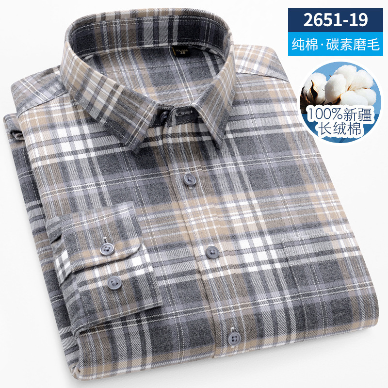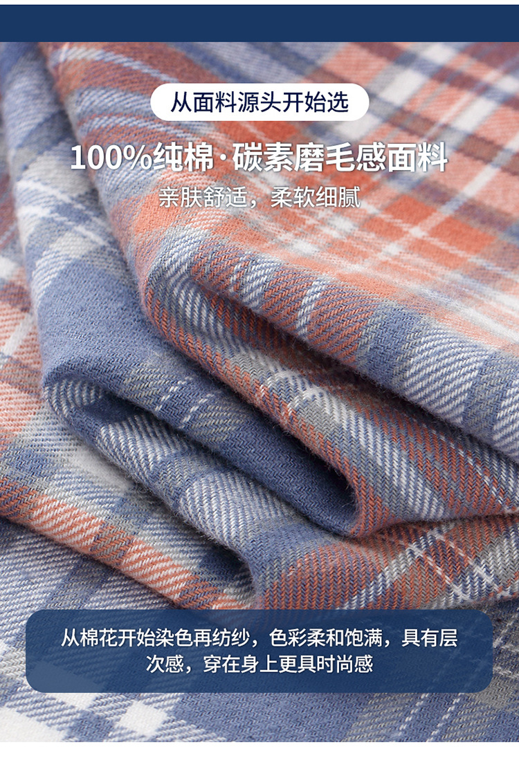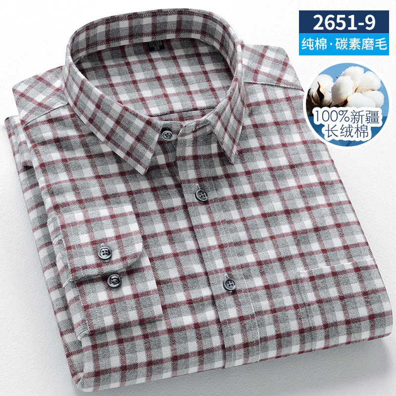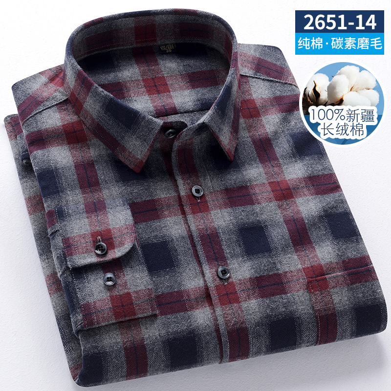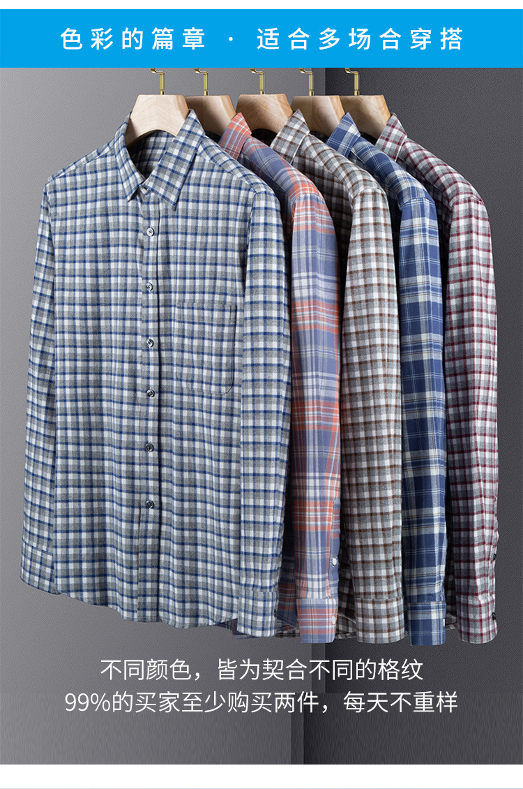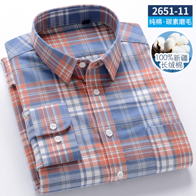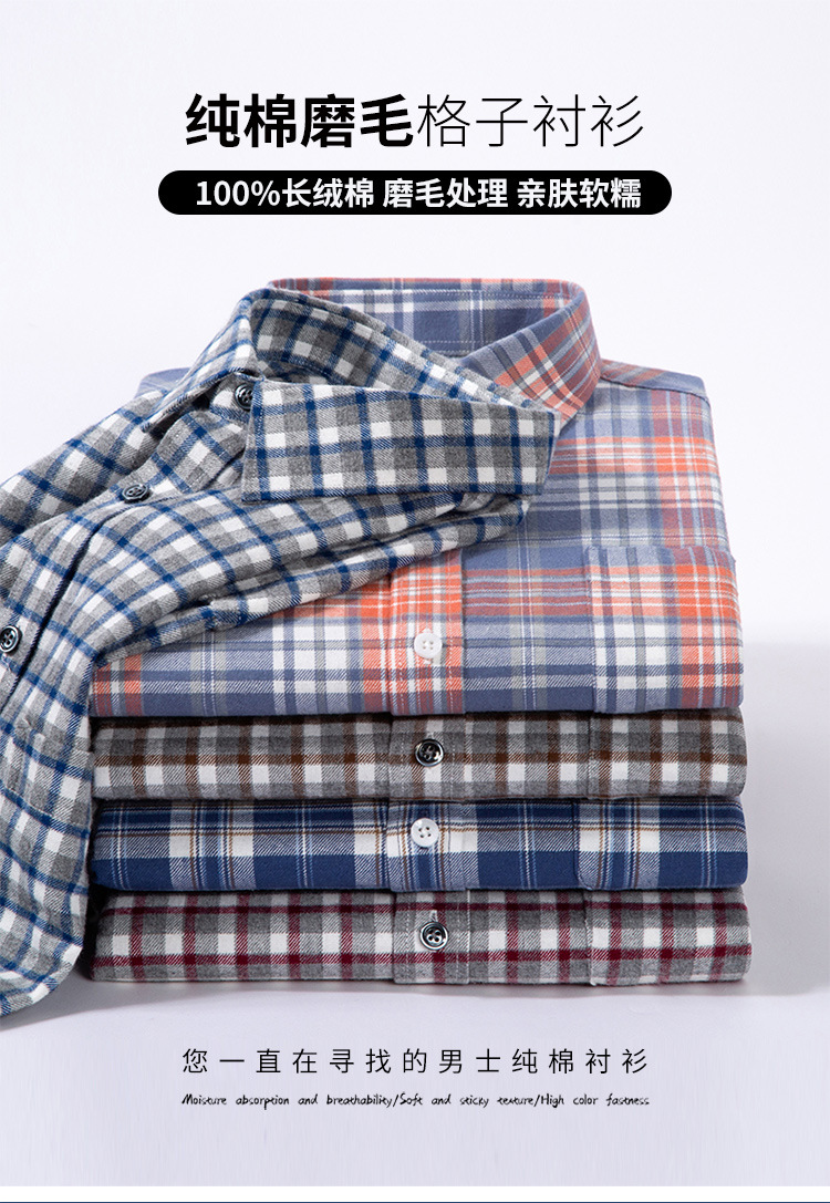 남성용 신상 봄, 가을 순면 기모 체크무늬 셔츠, 긴팔 면 오렌지 레드 체크무늬 캐주얼 셔츠, 트렌디한 남성 스타일스토어 가기