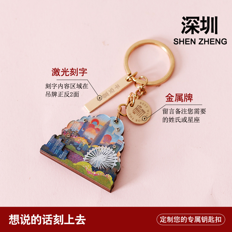 세계의 원래 선전 랜드 마크 키 체인 창 화려한 중국 성 백 가족 이름 축복 여행 기념 펜던트스토어 가기