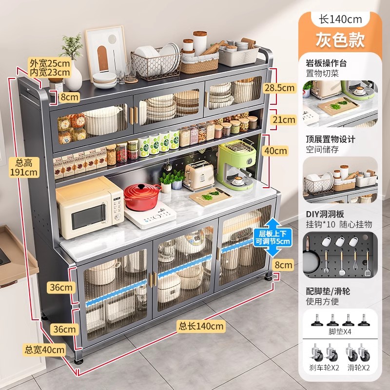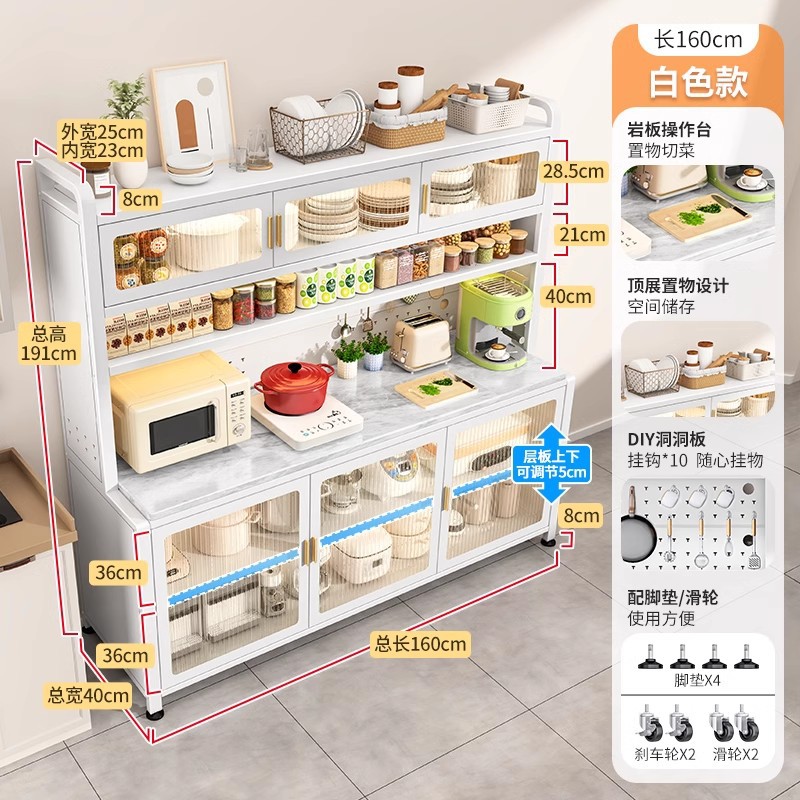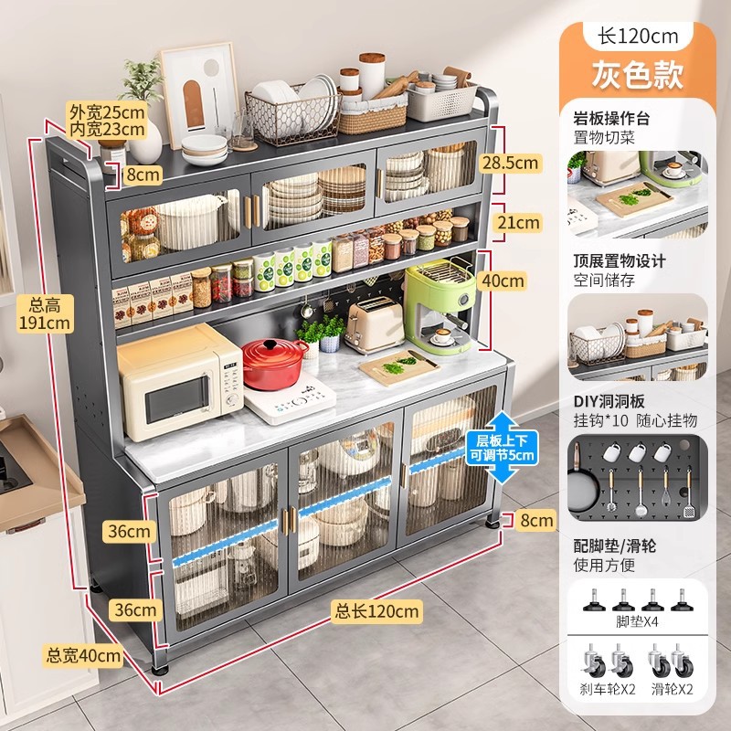 주방 석판 식기 보관 캐비닛 다층 도어형 전자레인지 수납장 다기능 선반스토어 가기