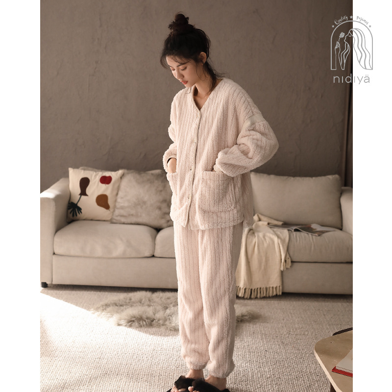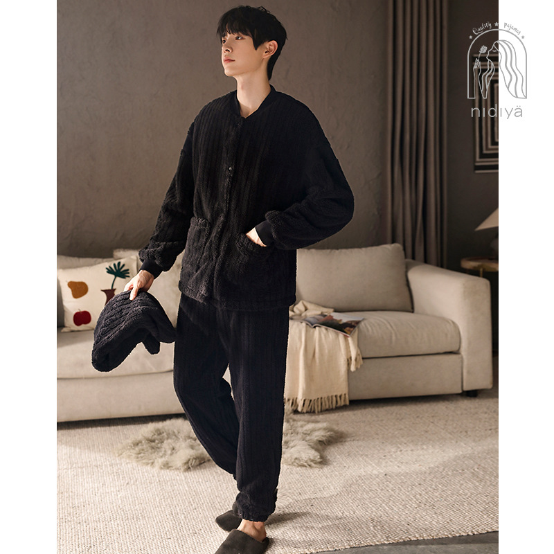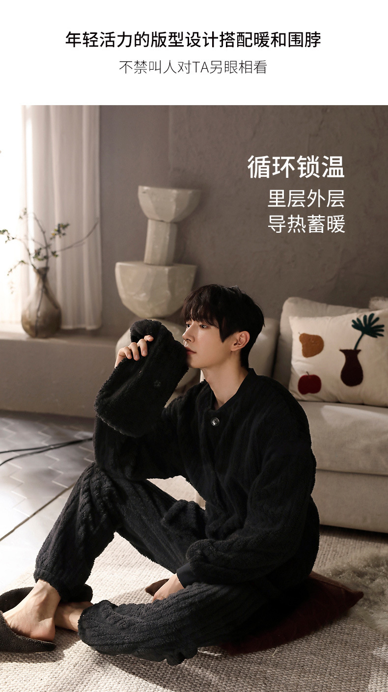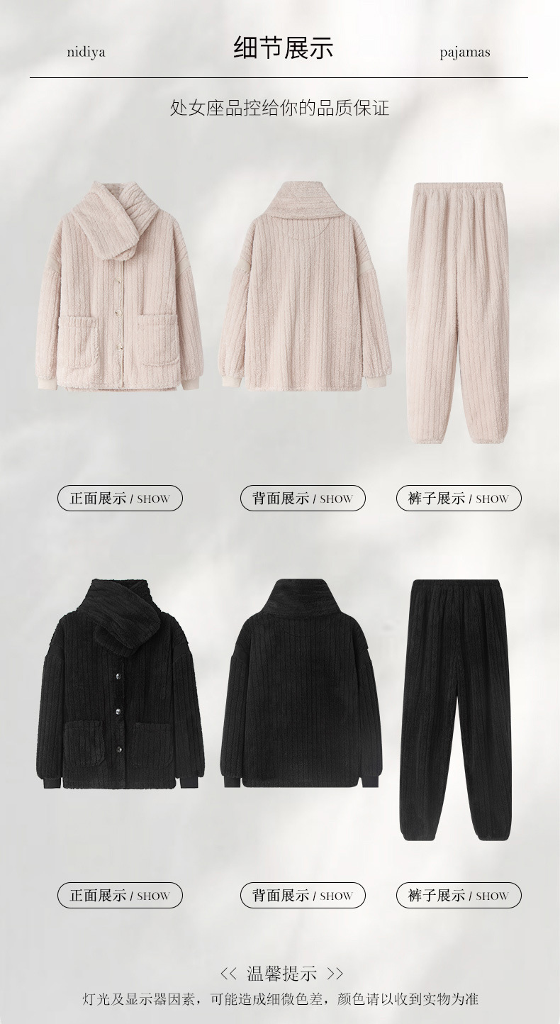 나디아 커플 잠옷 여자의 겨울 산호 양털 두꺼운 따뜻한 카디건 스카프 남자의 가정 의류 세트