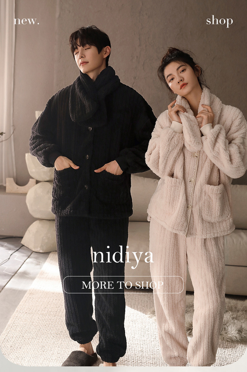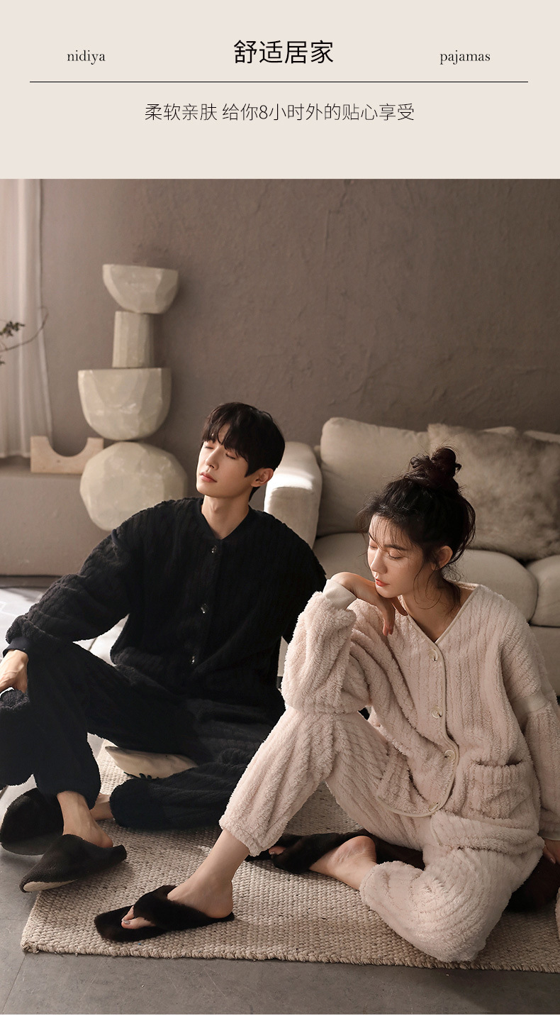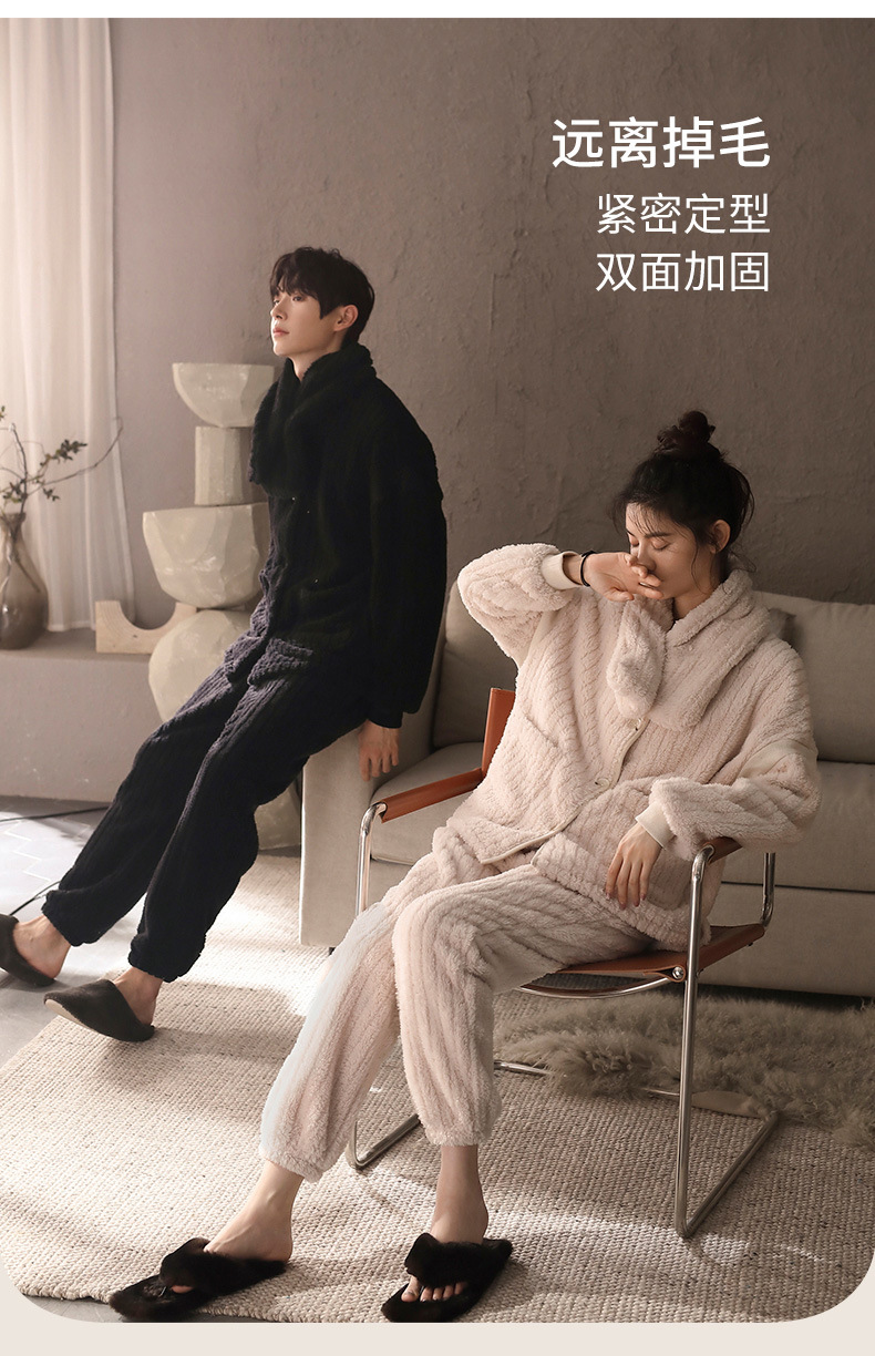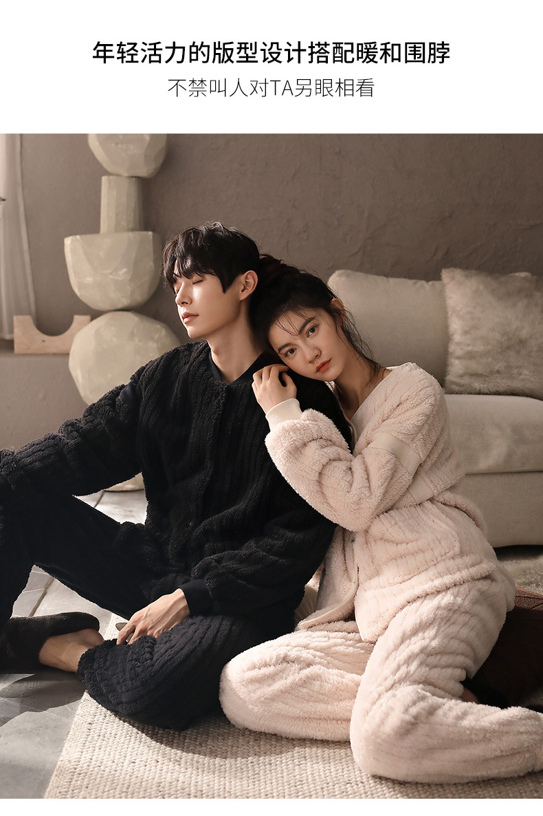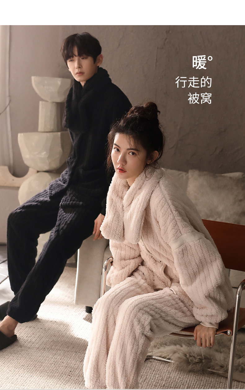 나디아 커플 잠옷 여자의 겨울 산호 양털 두꺼운 따뜻한 카디건 스카프 남자의 가정 의류 세트스토어 가기
