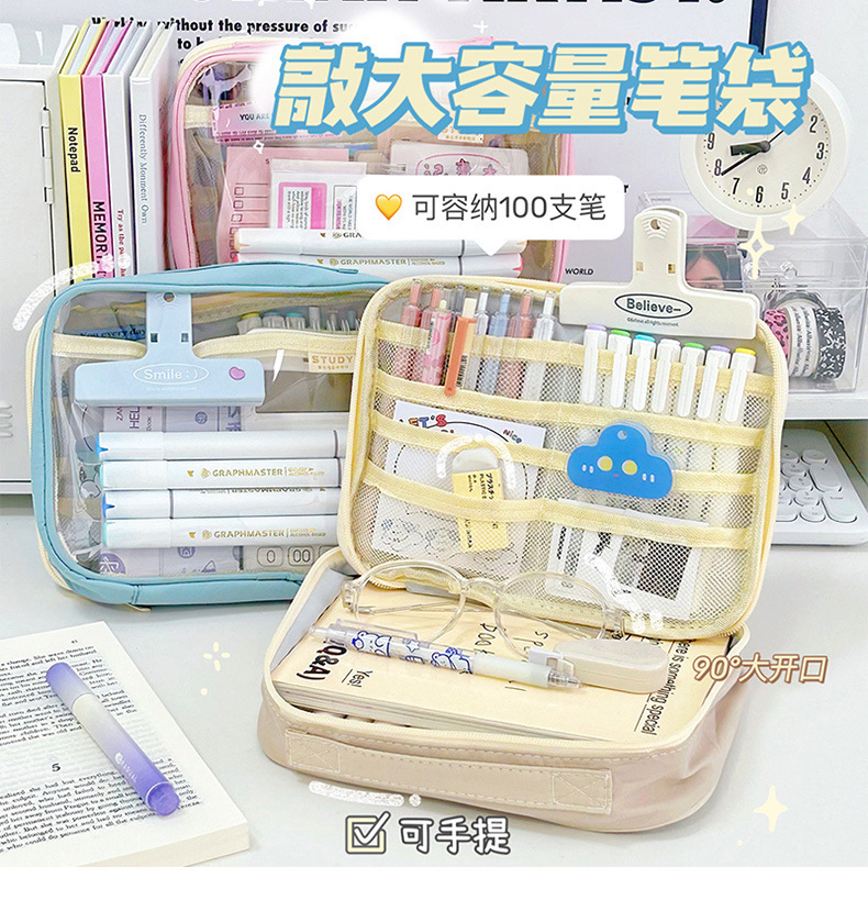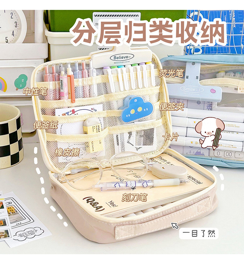 일본식 연필 가방 대용량 스타일 고가 문구 가방 다층 학생 문구 보관 대형 오픈 연필 가방