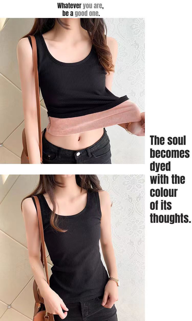 새로운 기모 두꺼운 따뜻한 조끼 여자의 겨울 섹시 민소매 슬링 내부 자체 발열 탑 베이스 셔츠