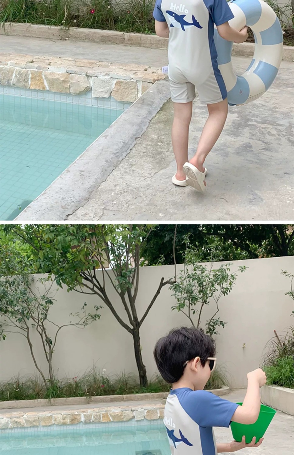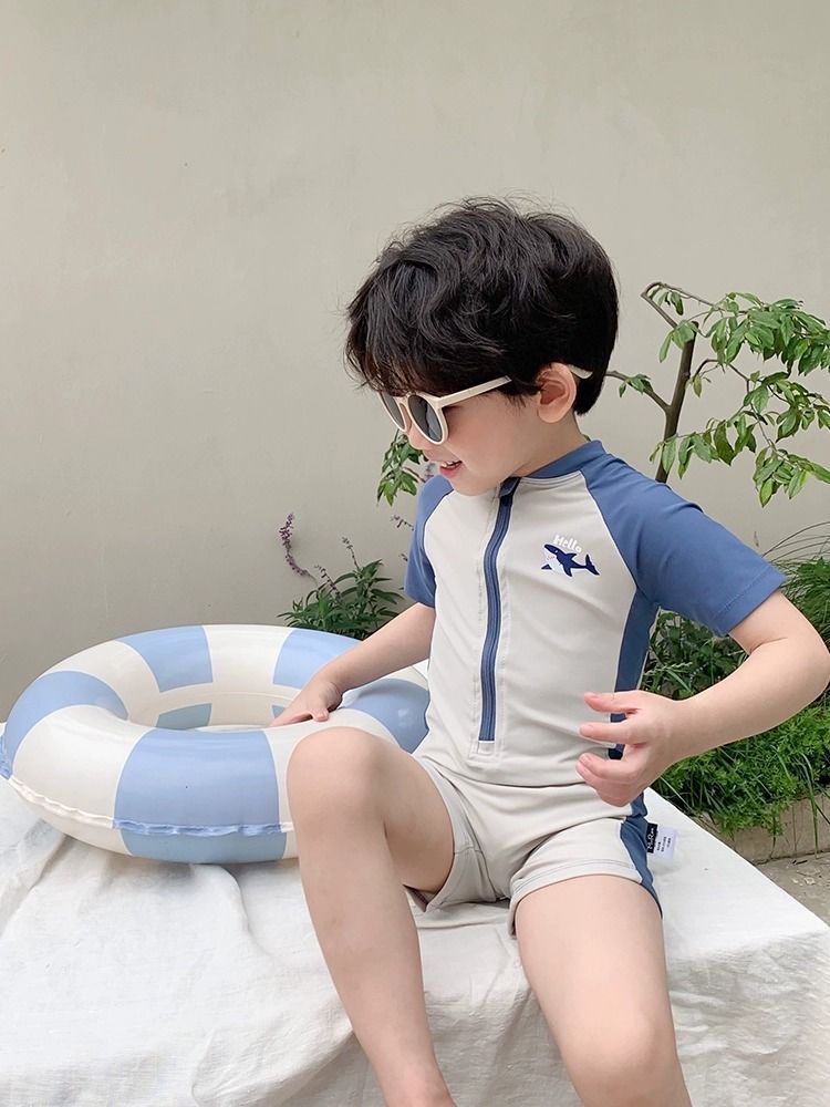 2026년 한국 아동용 원피스 수영복 남아용 반팔 반바지 수영 트레이닝 수영복 해변 휴가용 수영복