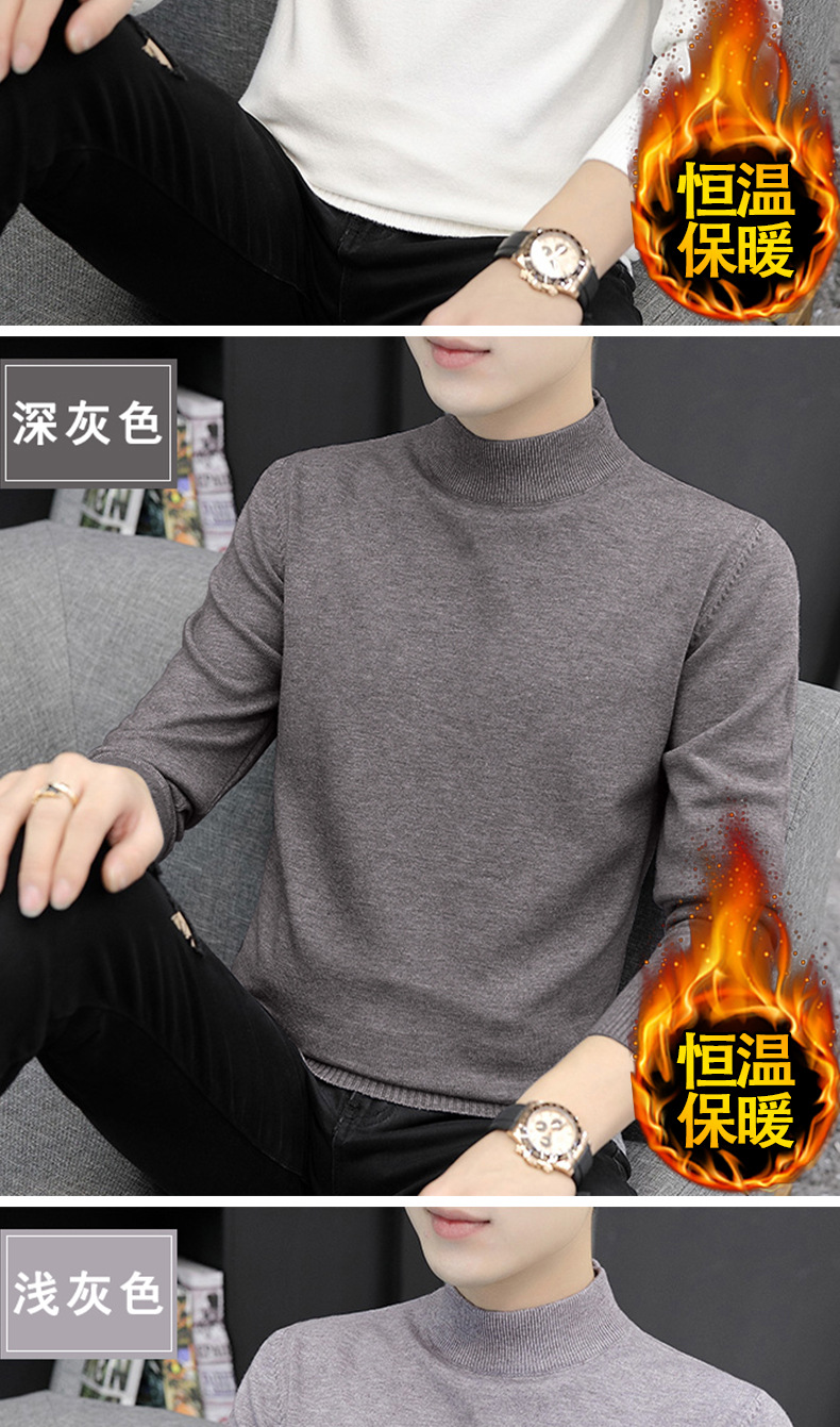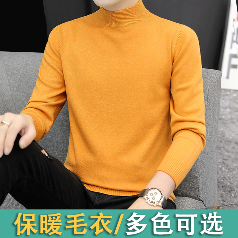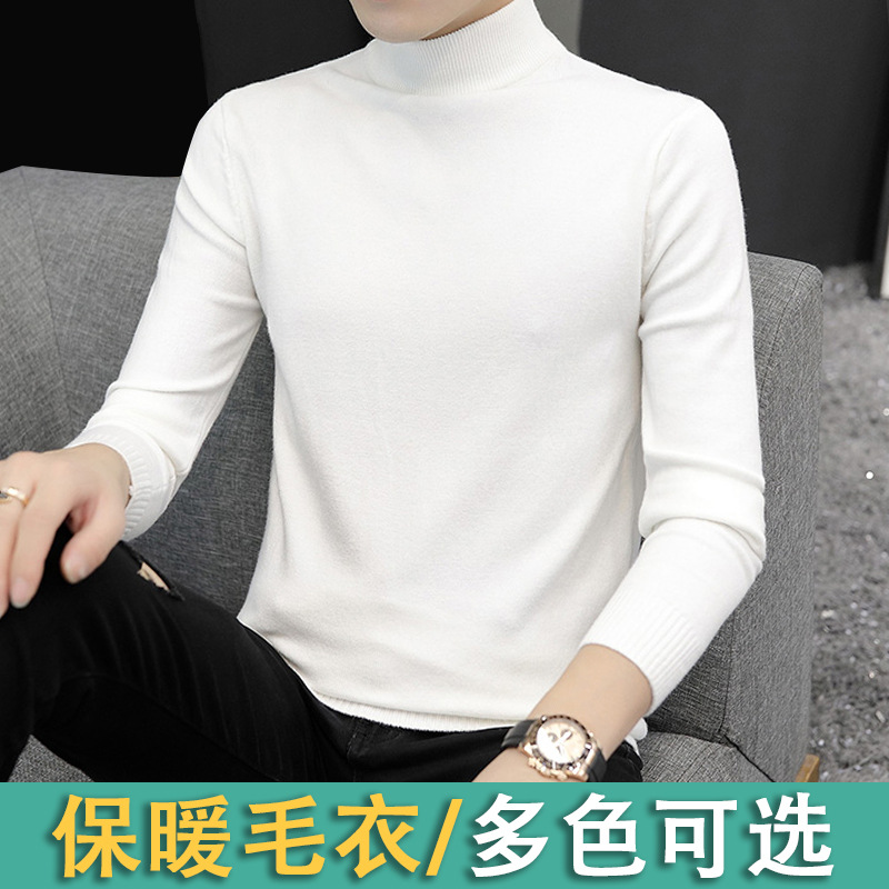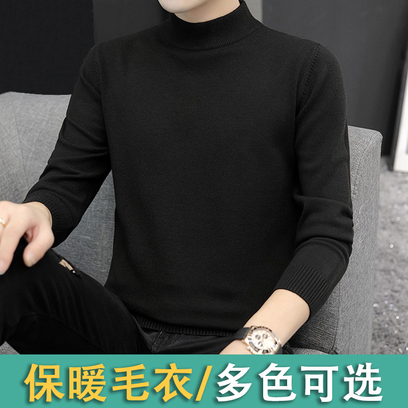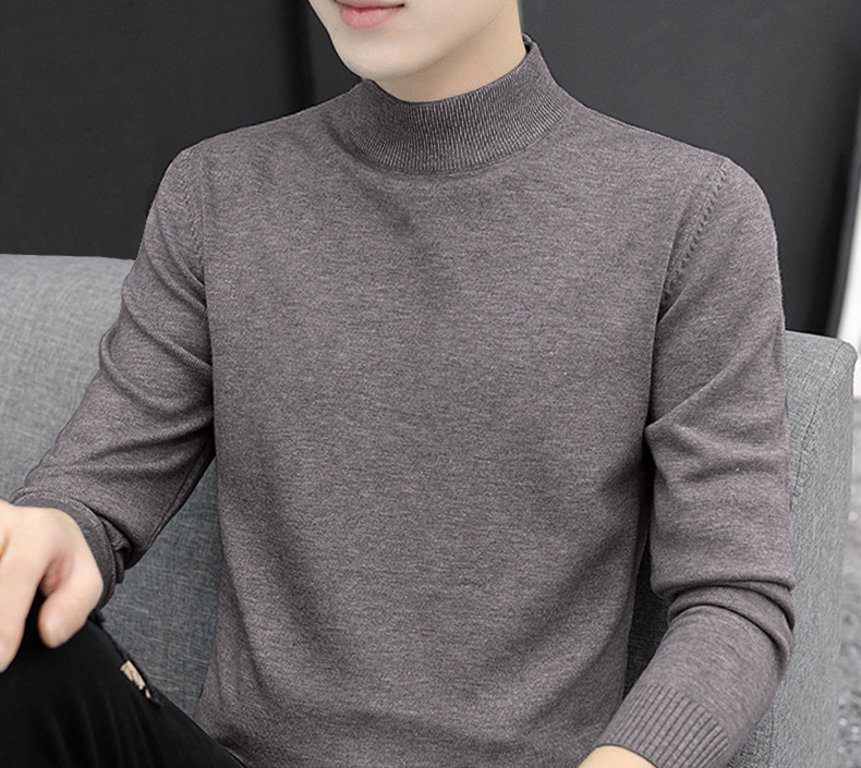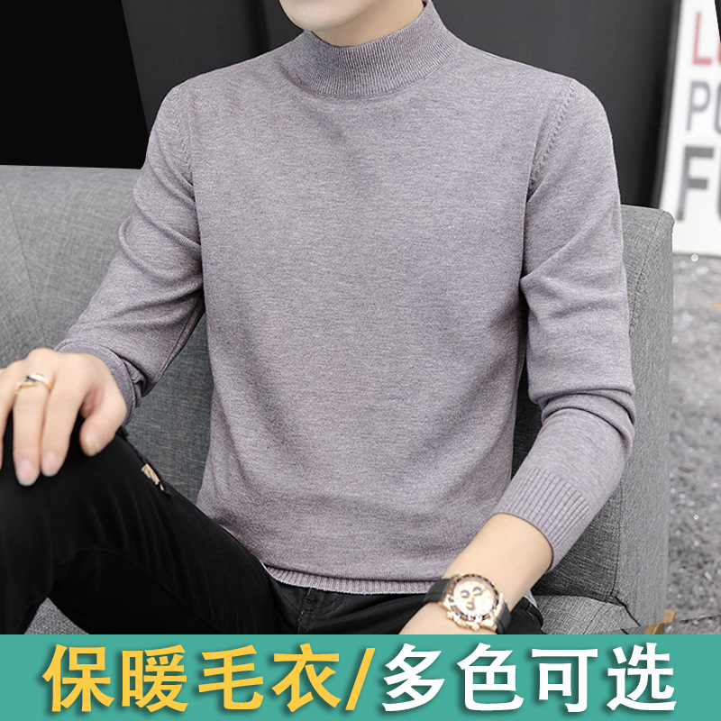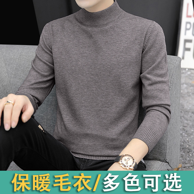 긴팔 스웨터 남성용 가을과 겨울 미드 칼라 풀오버 세미 하이 칼라 단색 스웨터 내부 니트 바닥 셔츠 유행 모든 매치스토어 가기