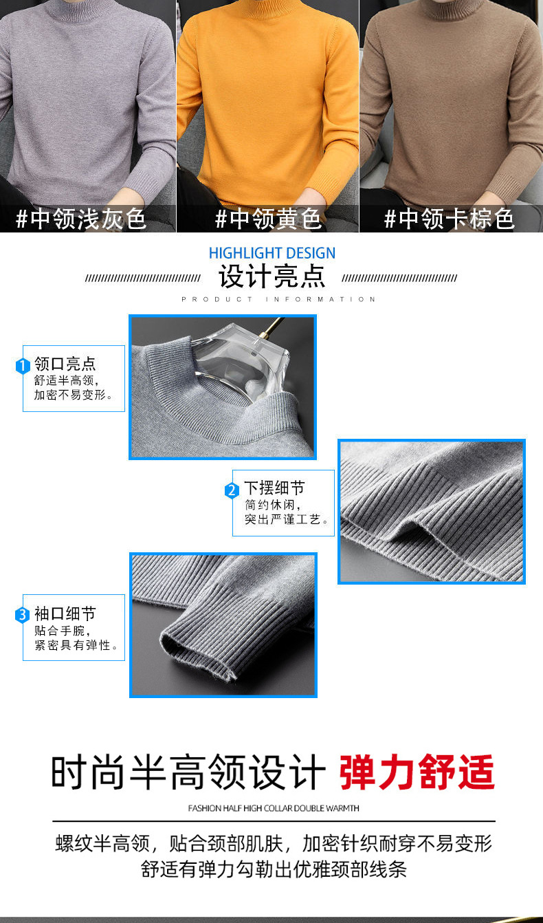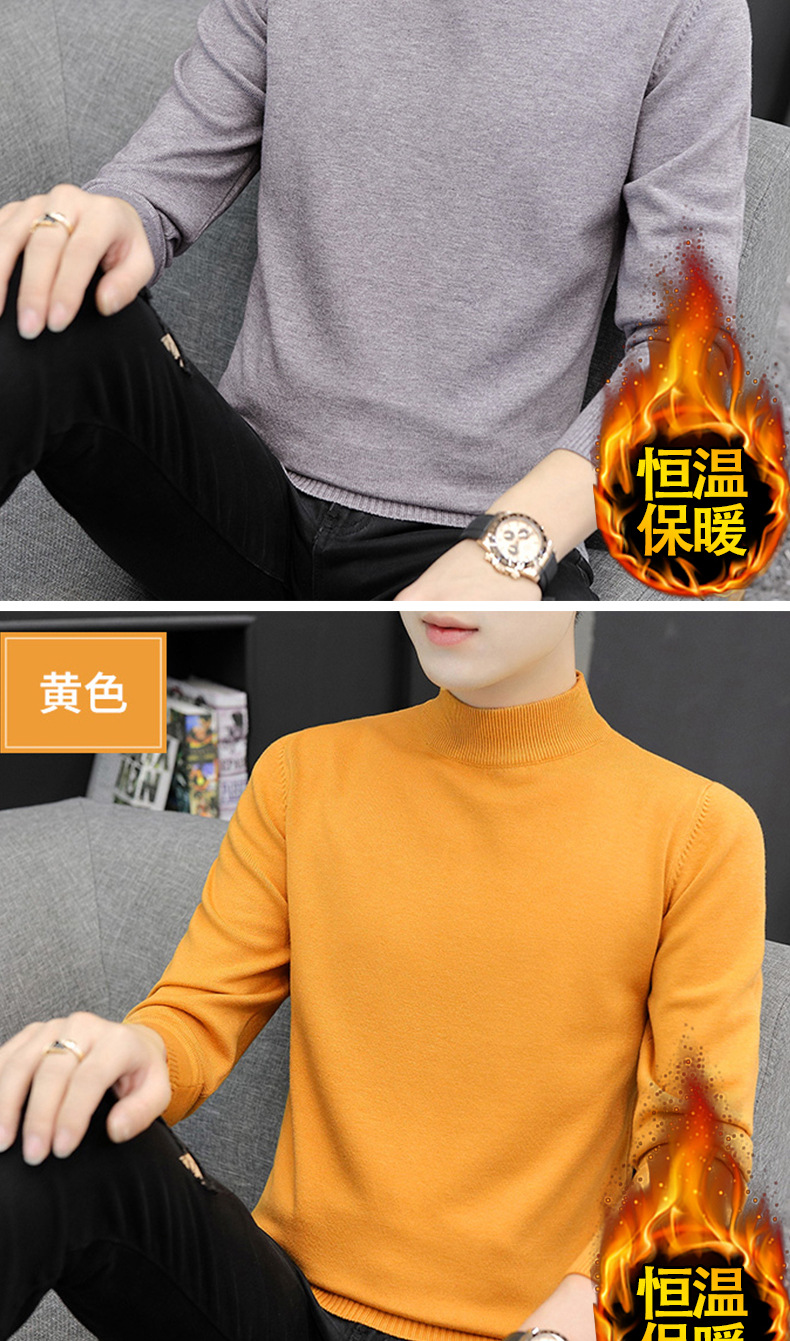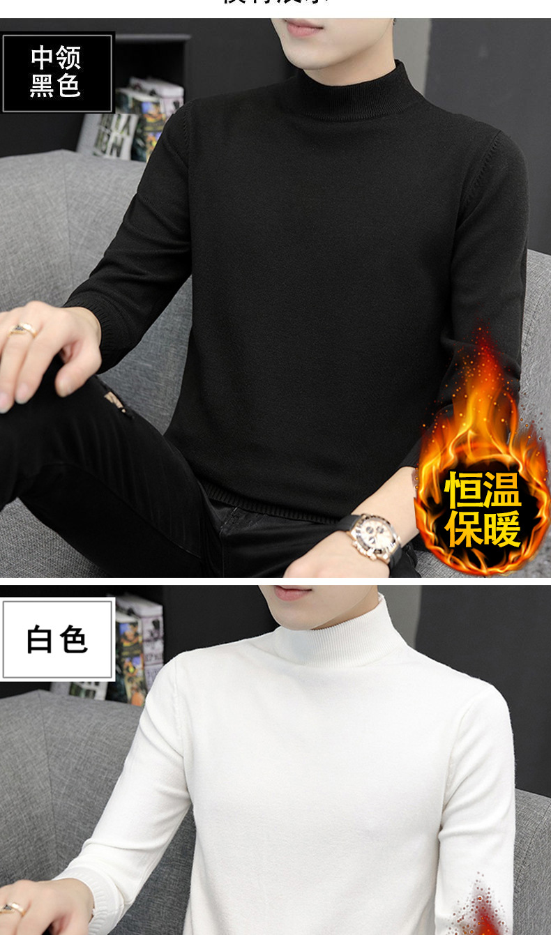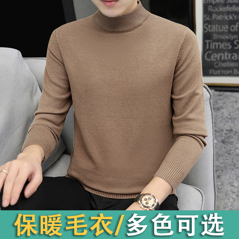 긴팔 스웨터 남성용 가을과 겨울 미드 칼라 풀오버 세미 하이 칼라 단색 스웨터 내부 니트 바닥 셔츠 유행 모든 매치스토어 가기