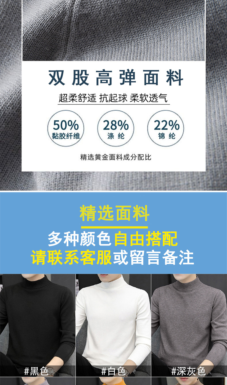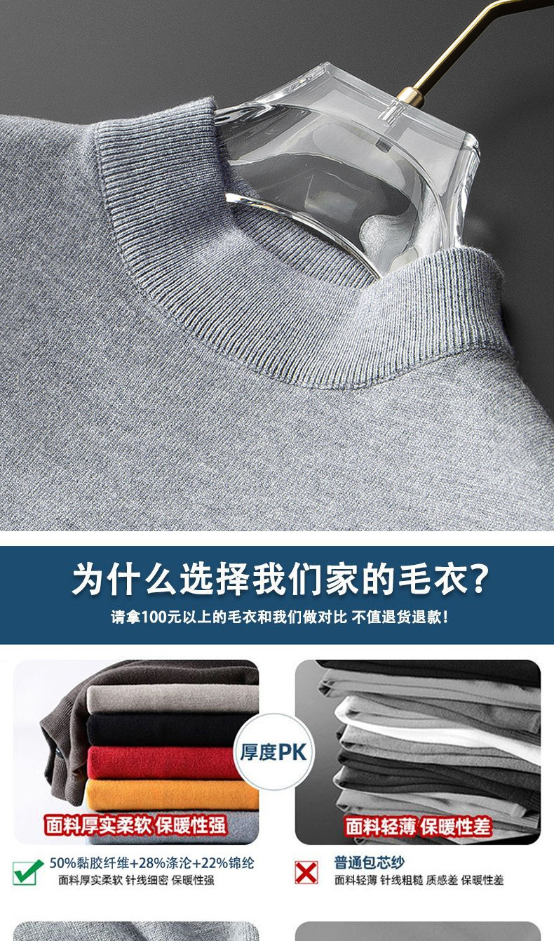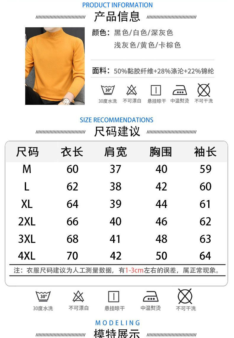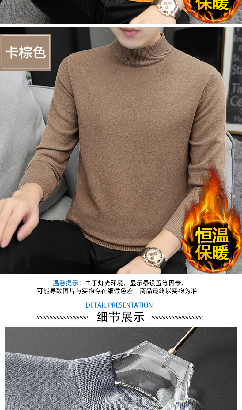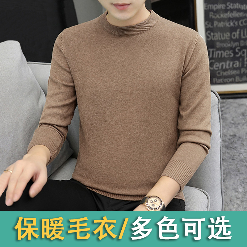 긴팔 스웨터 남성용 가을과 겨울 미드 칼라 풀오버 세미 하이 칼라 단색 스웨터 내부 니트 바닥 셔츠 유행 모든 매치스토어 가기