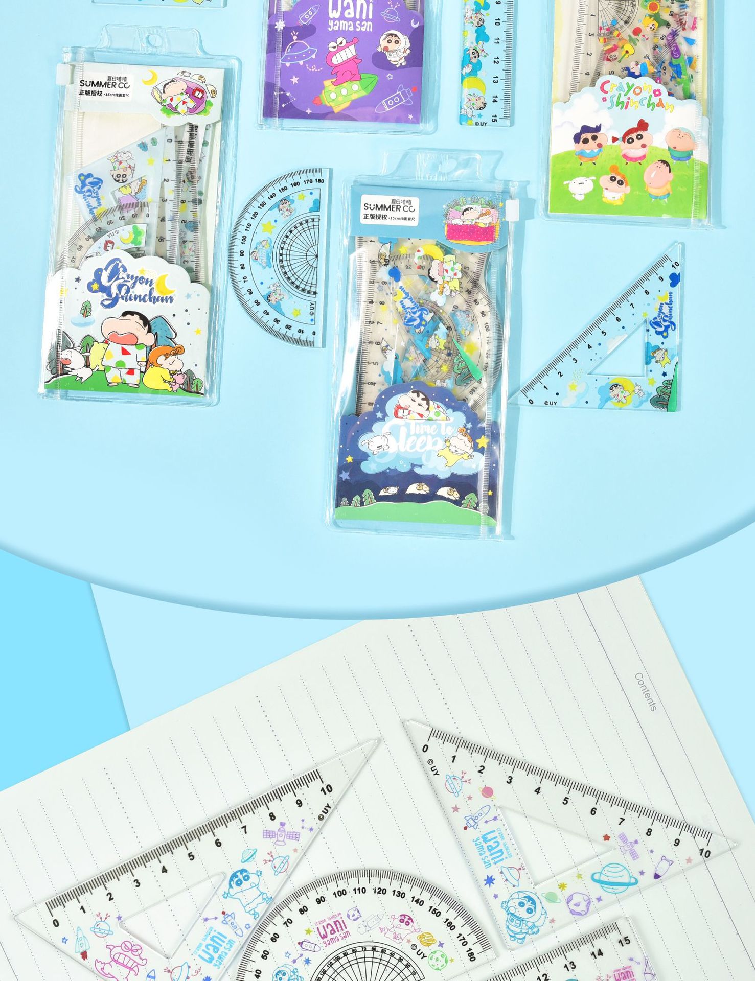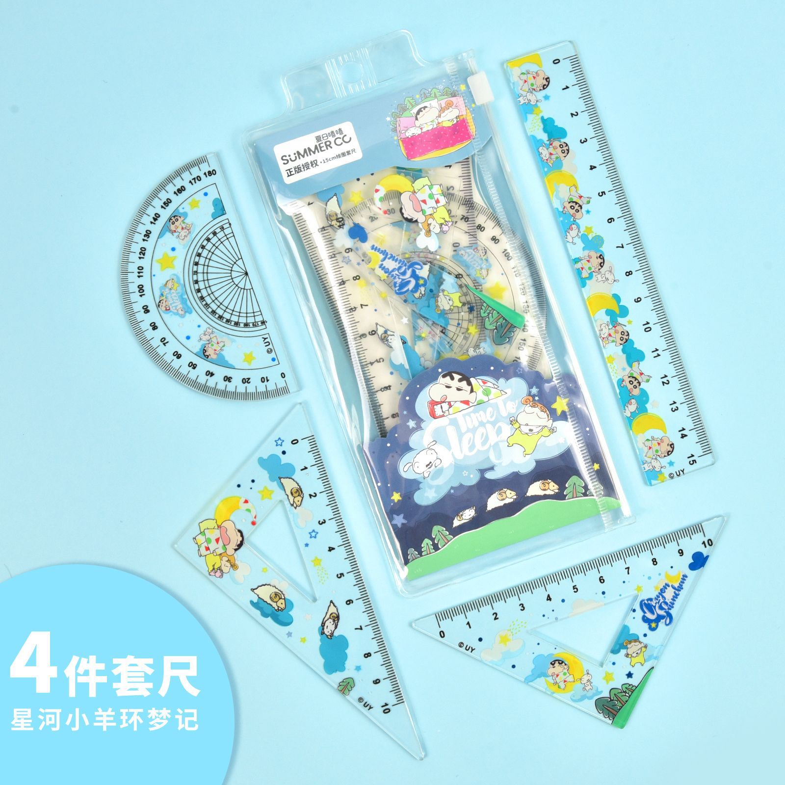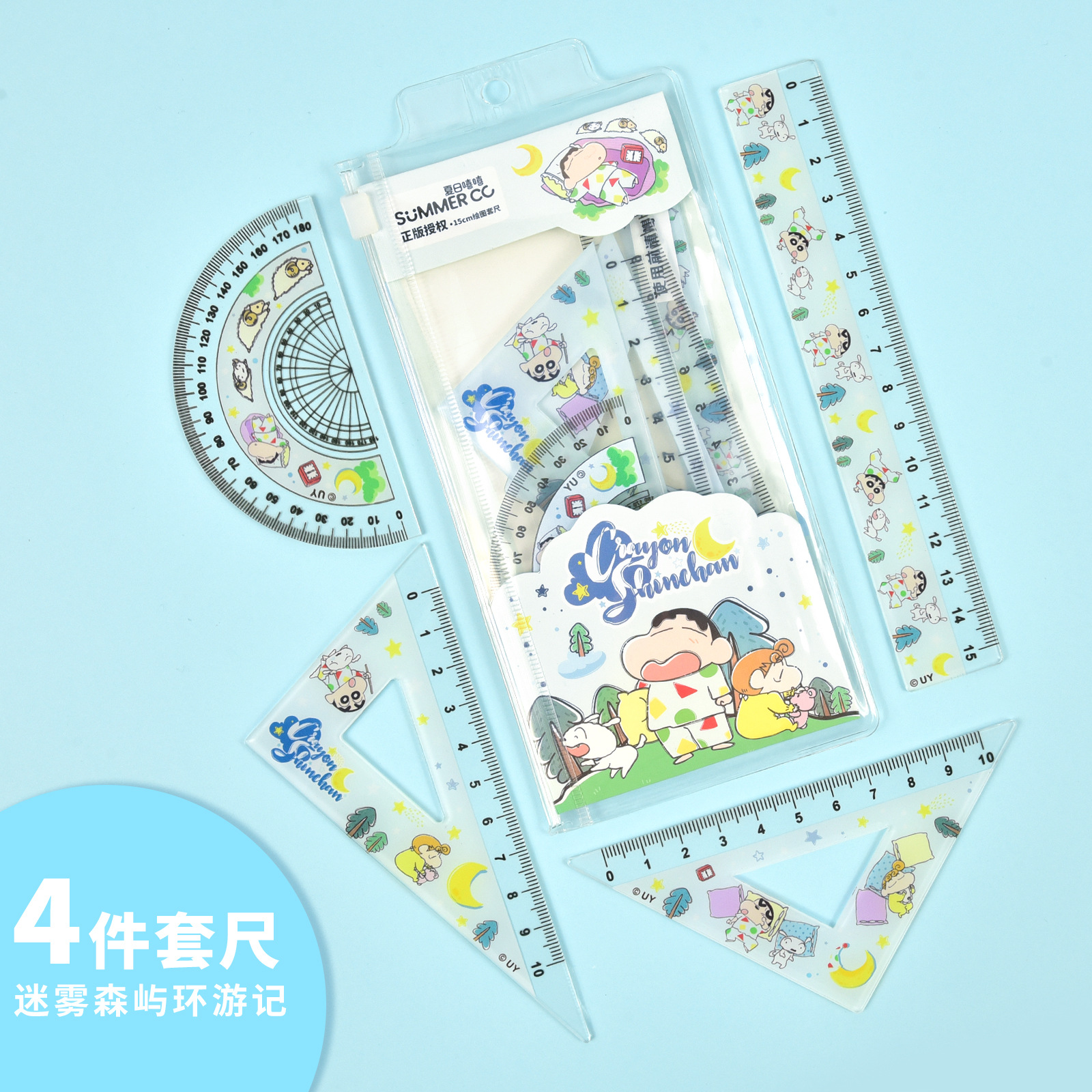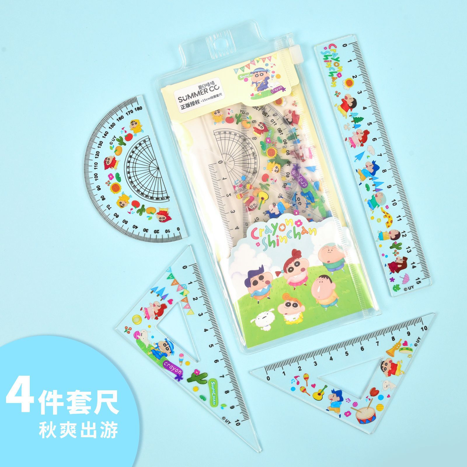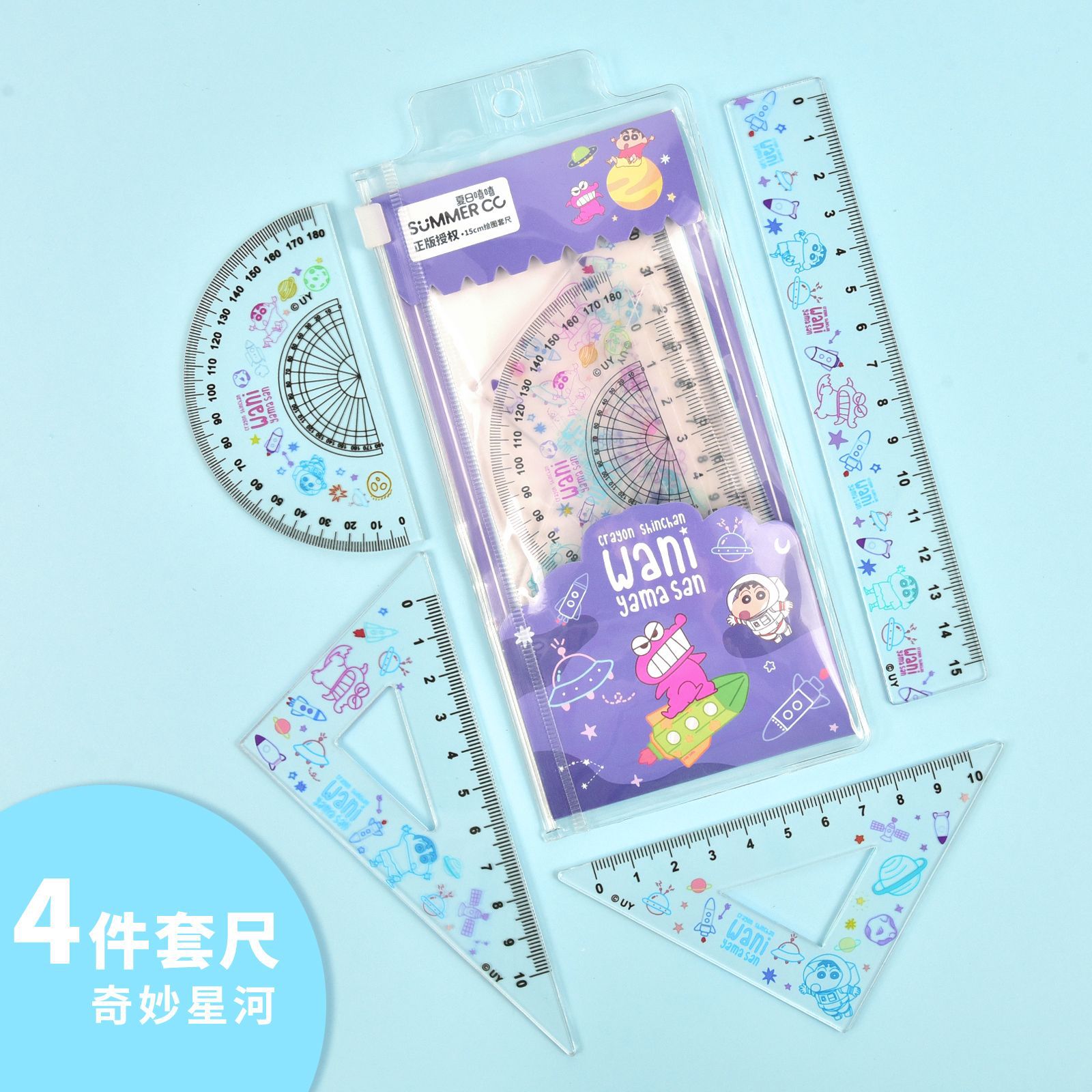 크레용 소형 새로운 정품 인증 * 눈금자 문구 4 피스 눈금자 삼각형 눈금자 다기능 눈금자 세트 세트스토어 가기