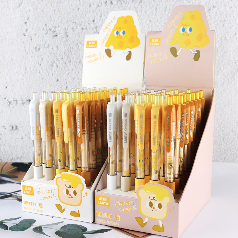 Blueprint 8736 샤프 펜슬 귀여운 치즈 하이 컬러 가치 학생들이 만화 연필 부드러운 고무 커버를 눌러 펜을 잡고 쓰기