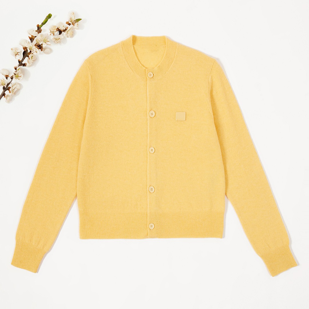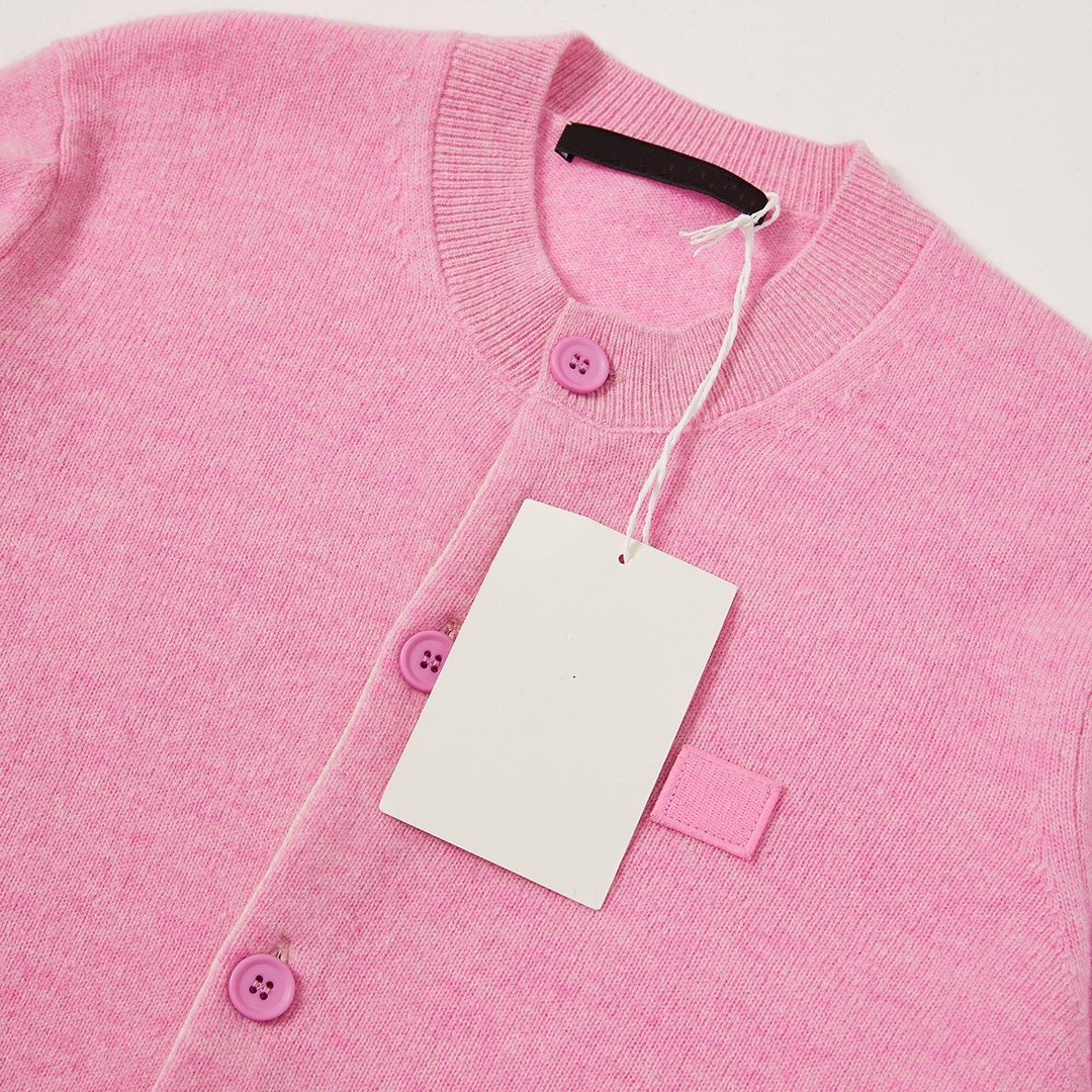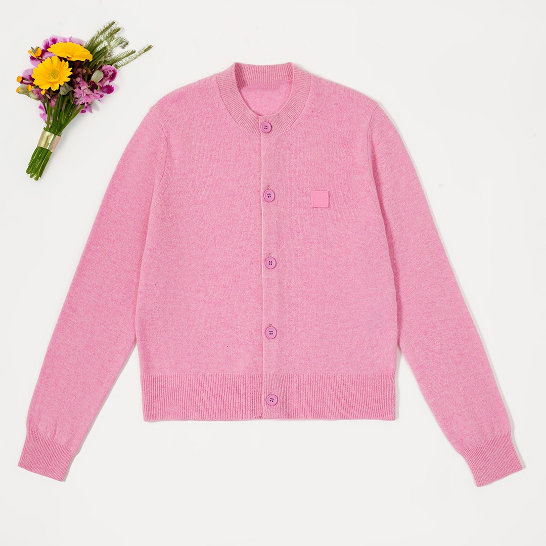 25초가을 트렌디 브랜드 고급스러운 스마일리 얼굴 사각형 자수 AC 라운드넥 울 니트 가디건 스웨터 여성용 긴팔스토어 가기