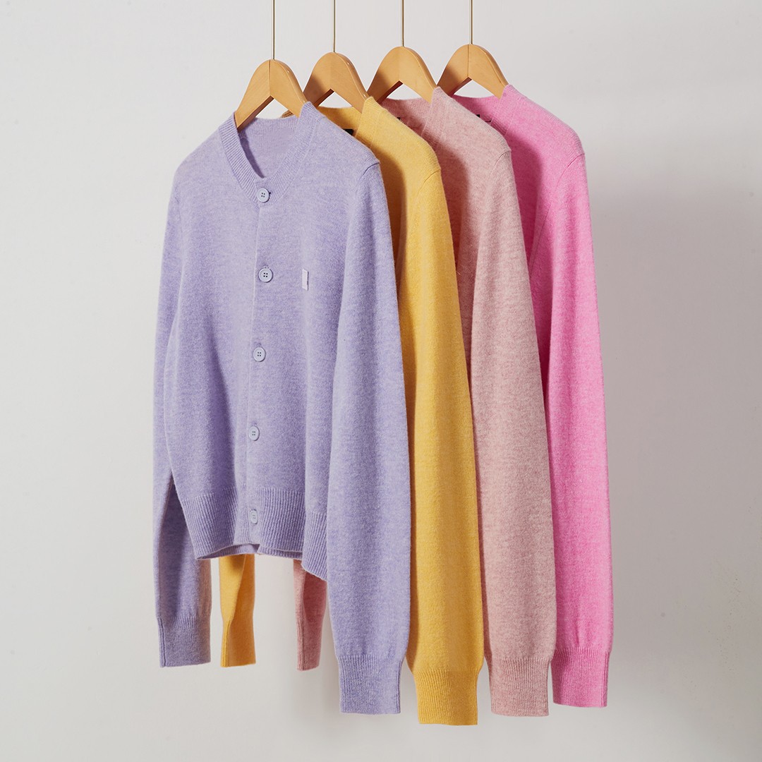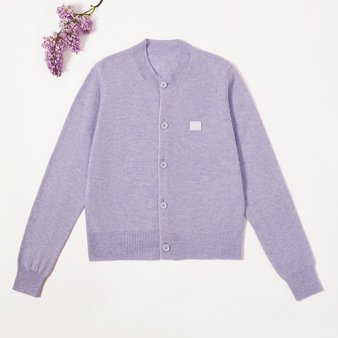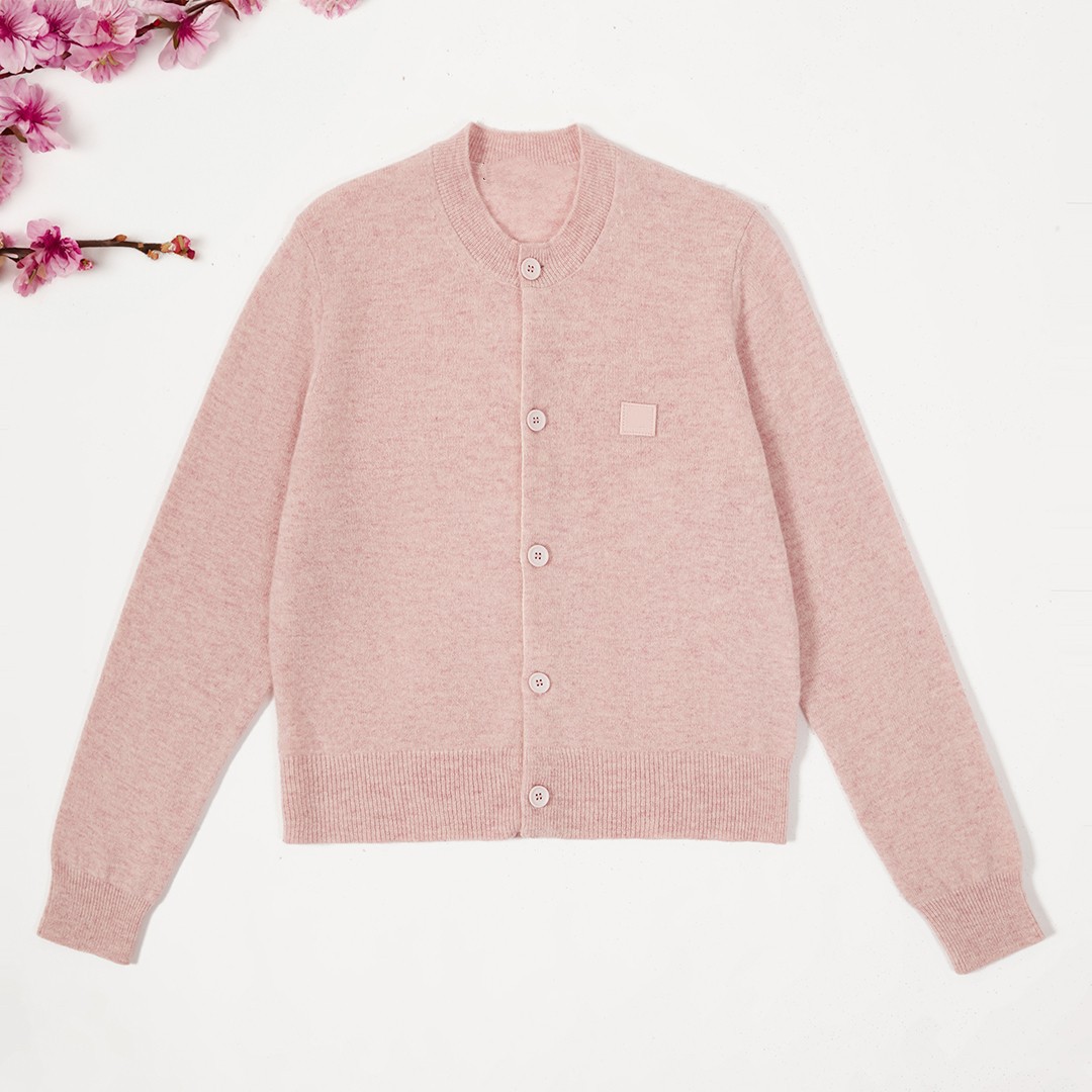 25초가을 트렌디 브랜드 고급스러운 스마일리 얼굴 사각형 자수 AC 라운드넥 울 니트 가디건 스웨터 여성용 긴팔스토어 가기