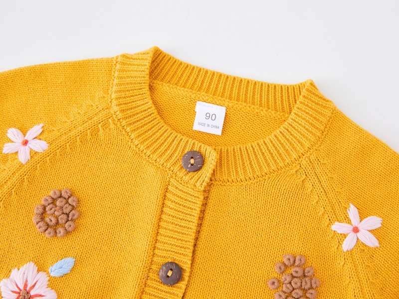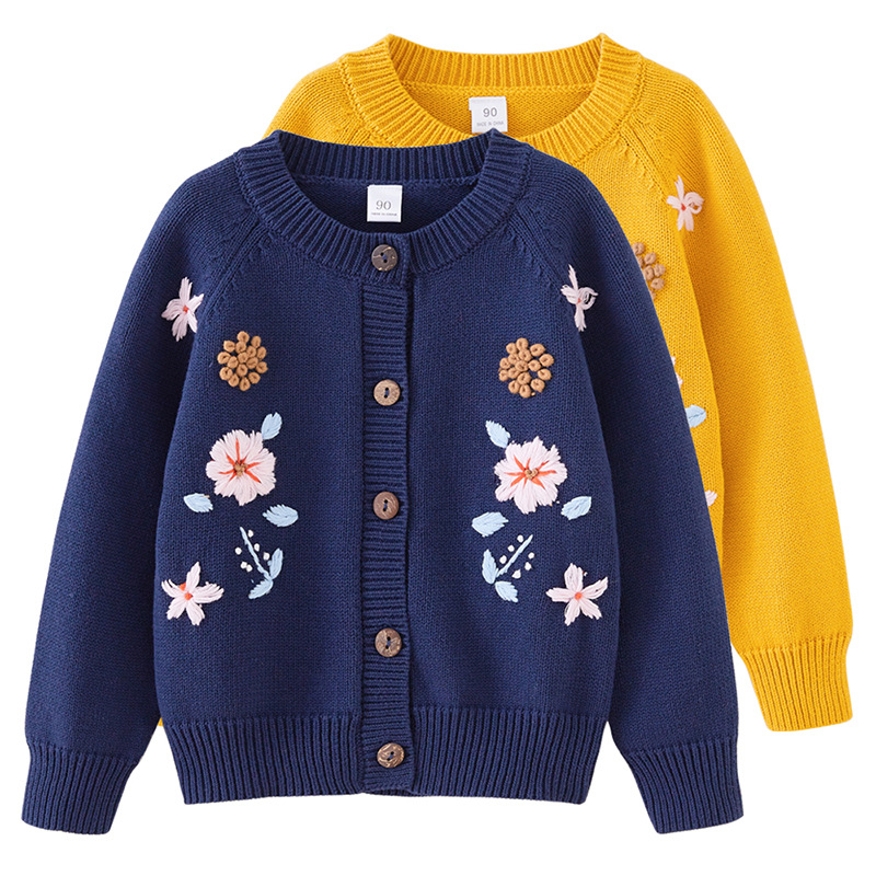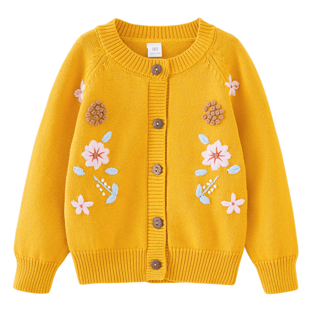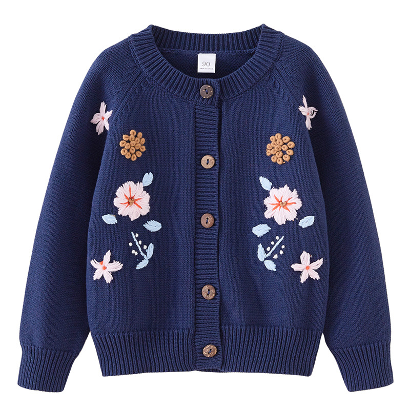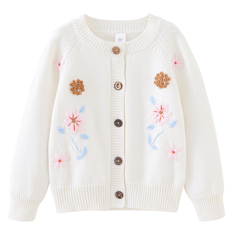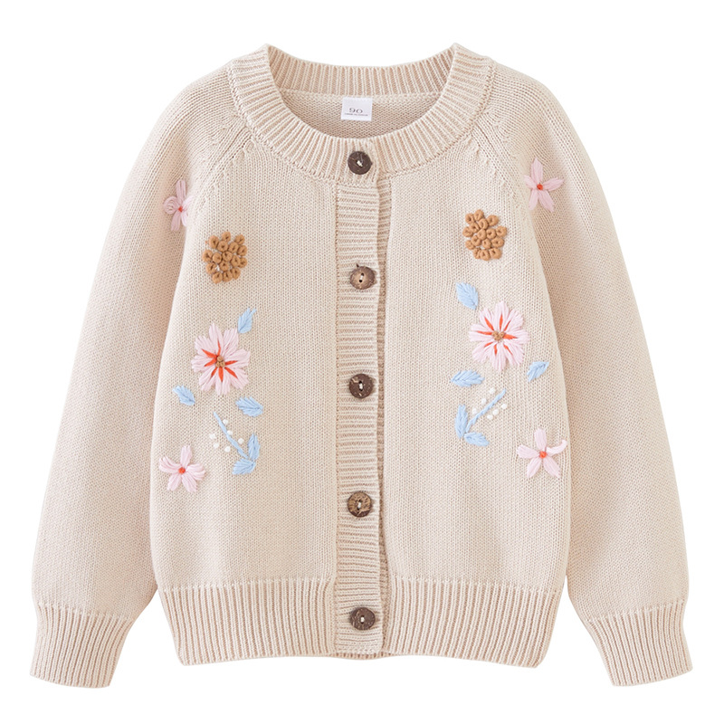 유럽과 미국 봄과 가을 새로운 라운드 넥 소녀 니트 가디건 면 중공업 손 자수 중소 어린이 스웨터 가디건 도매스토어 가기