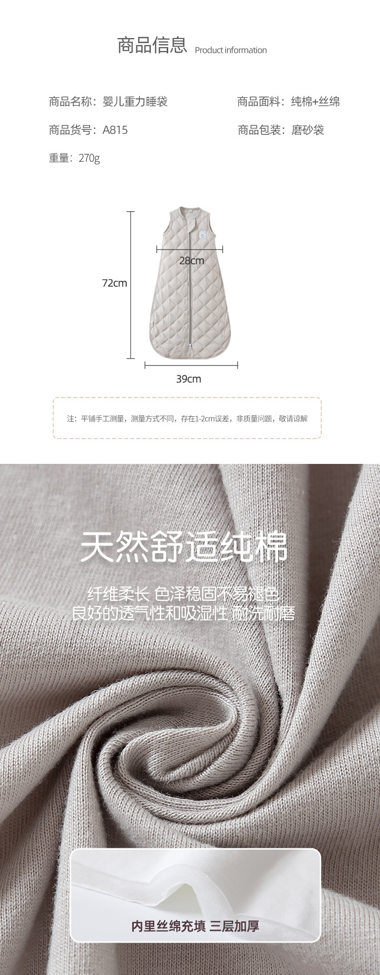 • 회색 (퀼트 조끼 침낭) (길이 78 가슴 30)