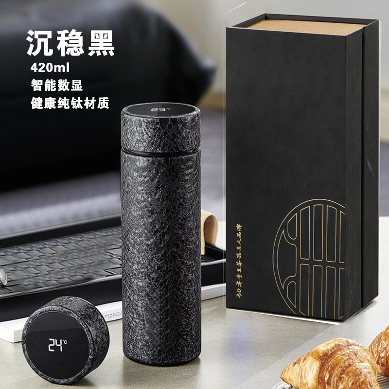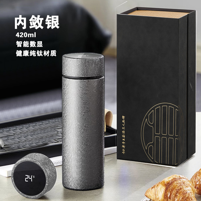 순수 티타늄 보온병 컵 남성용 지능형 온도 디스플레이 고급 비즈니스 선물 상자 차 물 분리 컵 휴대용 새 물 컵스토어 가기