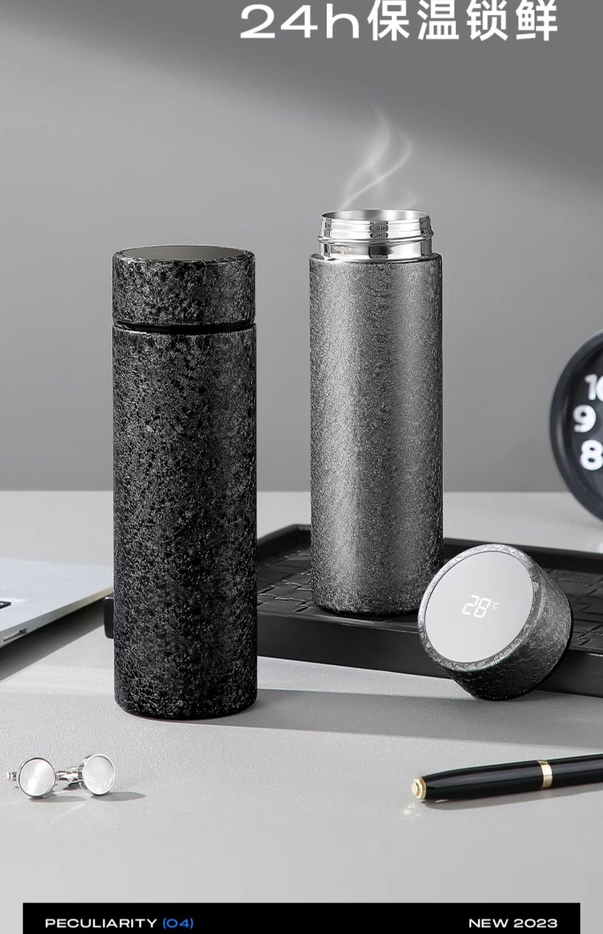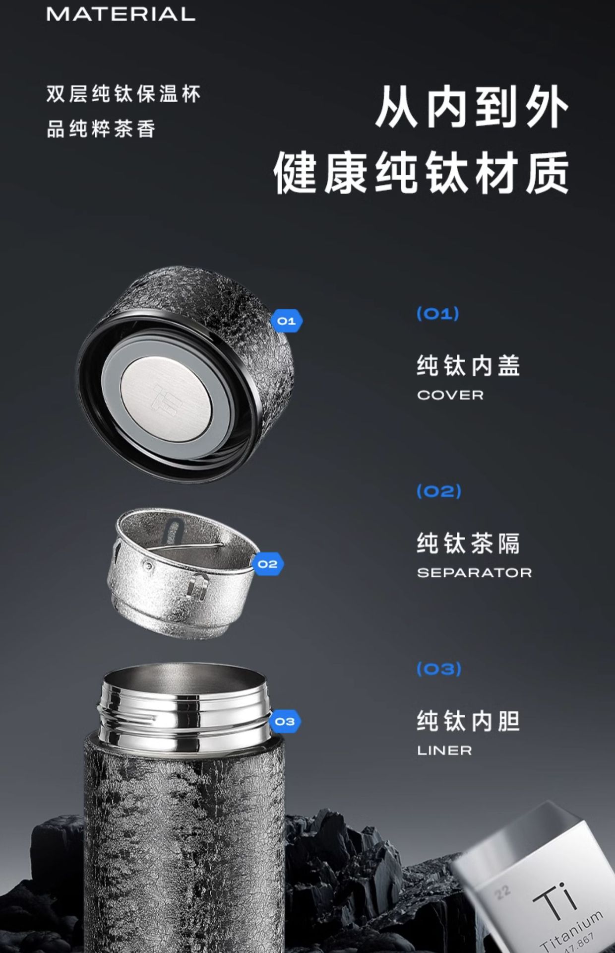 • 항균 티타늄 보온병 컵 - 차분한 블랙