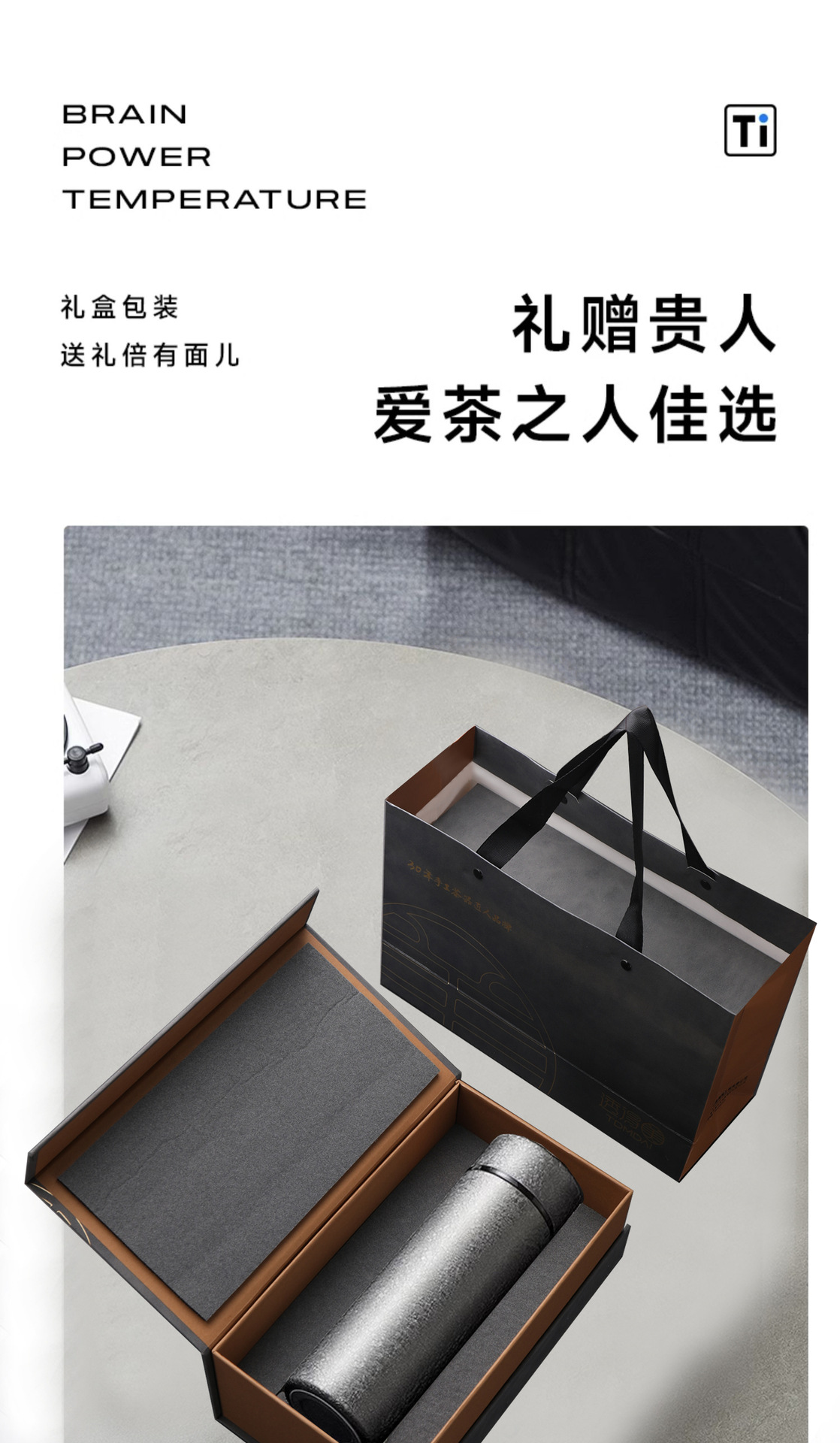 순수 티타늄 보온병 컵 남성용 지능형 온도 디스플레이 고급 비즈니스 선물 상자 차 물 분리 컵 휴대용 새 물 컵