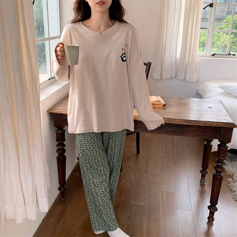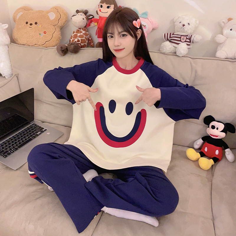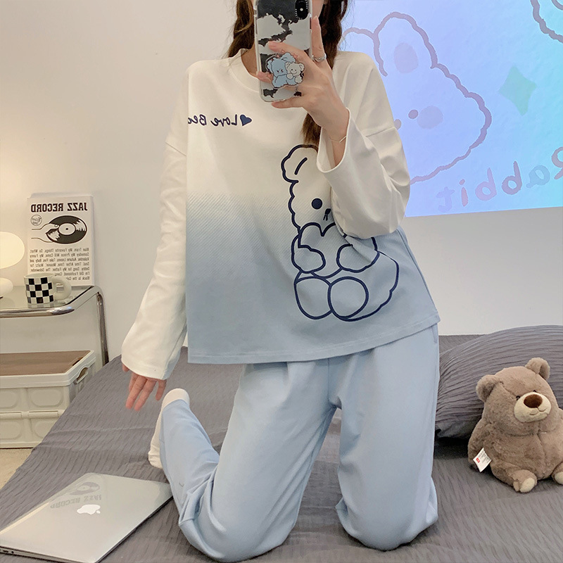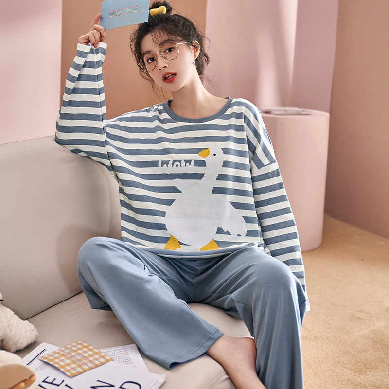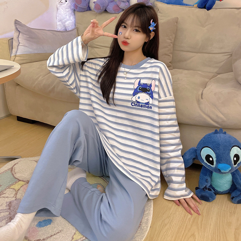 봄과 가을 잠옷 여자의 긴팔 바지 겉옷 세트 귀여운 여자의 가을과 겨울 새로운 만화 격자 무늬스토어 가기