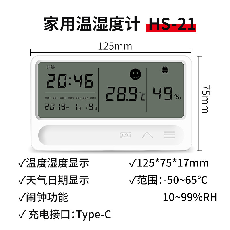 융합 측정 HS-21 지능형 가정용 전자 디지털 온도 습도 측정기 내장 리튬 탁상용 온도계 습도계