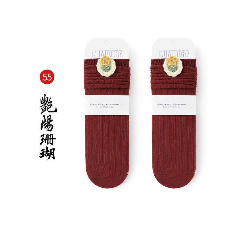 어린이 양말 가을 아기 소녀 뼈없는 스타킹 소녀 귀여운 꽃 중간 스타킹 빗질 코튼 아이 양말