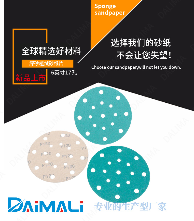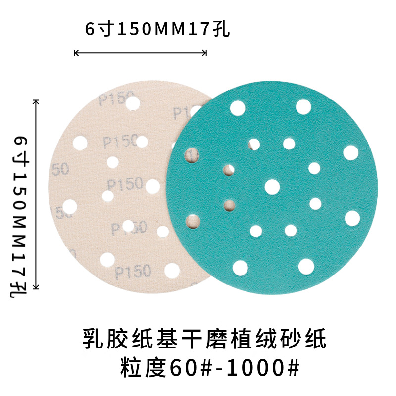 6인치 17홀 녹색 벨벳 사포 자동차 퍼티 연마용 녹색 사포 벨벳 건식 연마지 연마 광택지