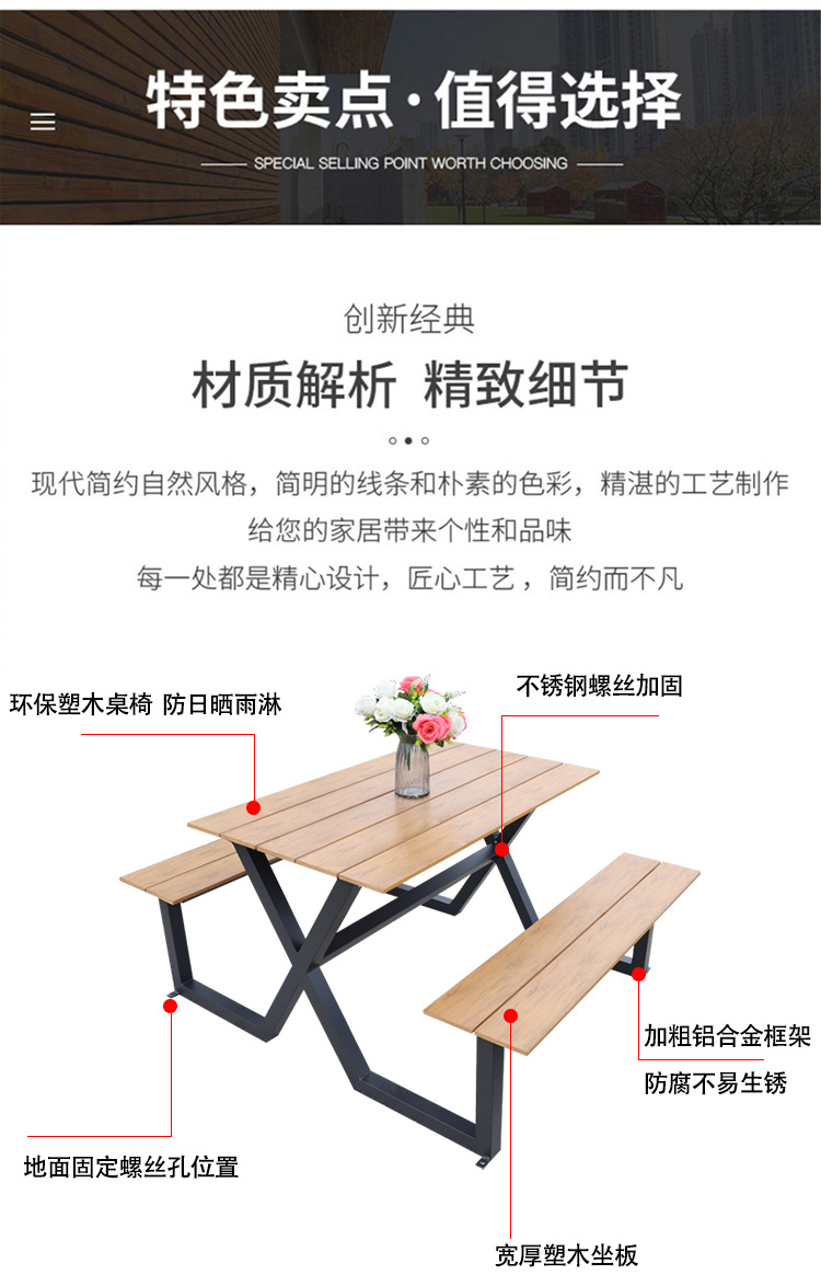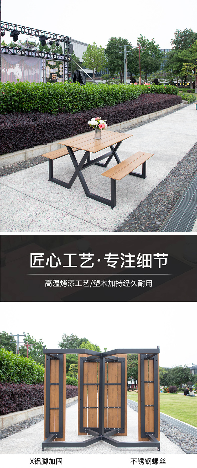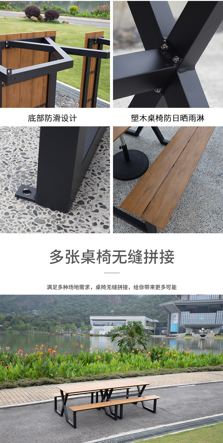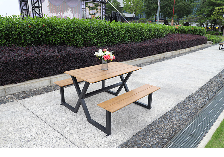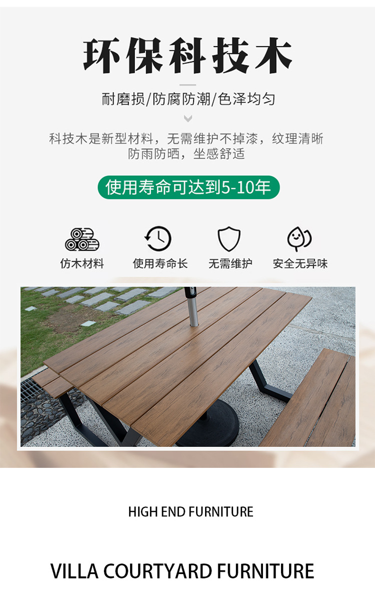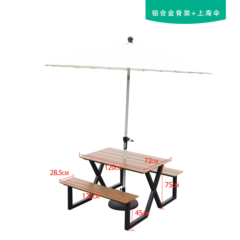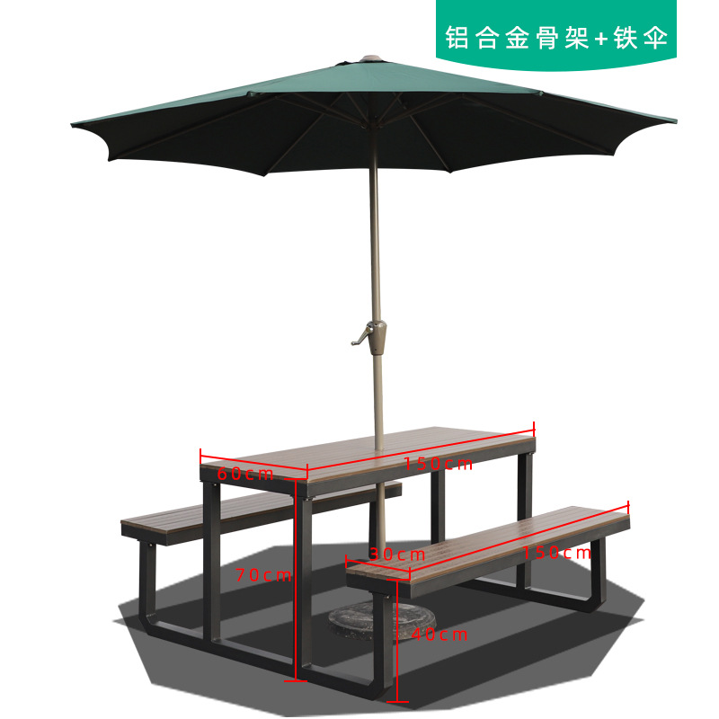 야외 원피스 테이블과 의자 조합 안뜰 벤치 문학 여행 명승지 상업 필드 부식 방지 목재 야외 속성 테이블과 의자 우산스토어 가기