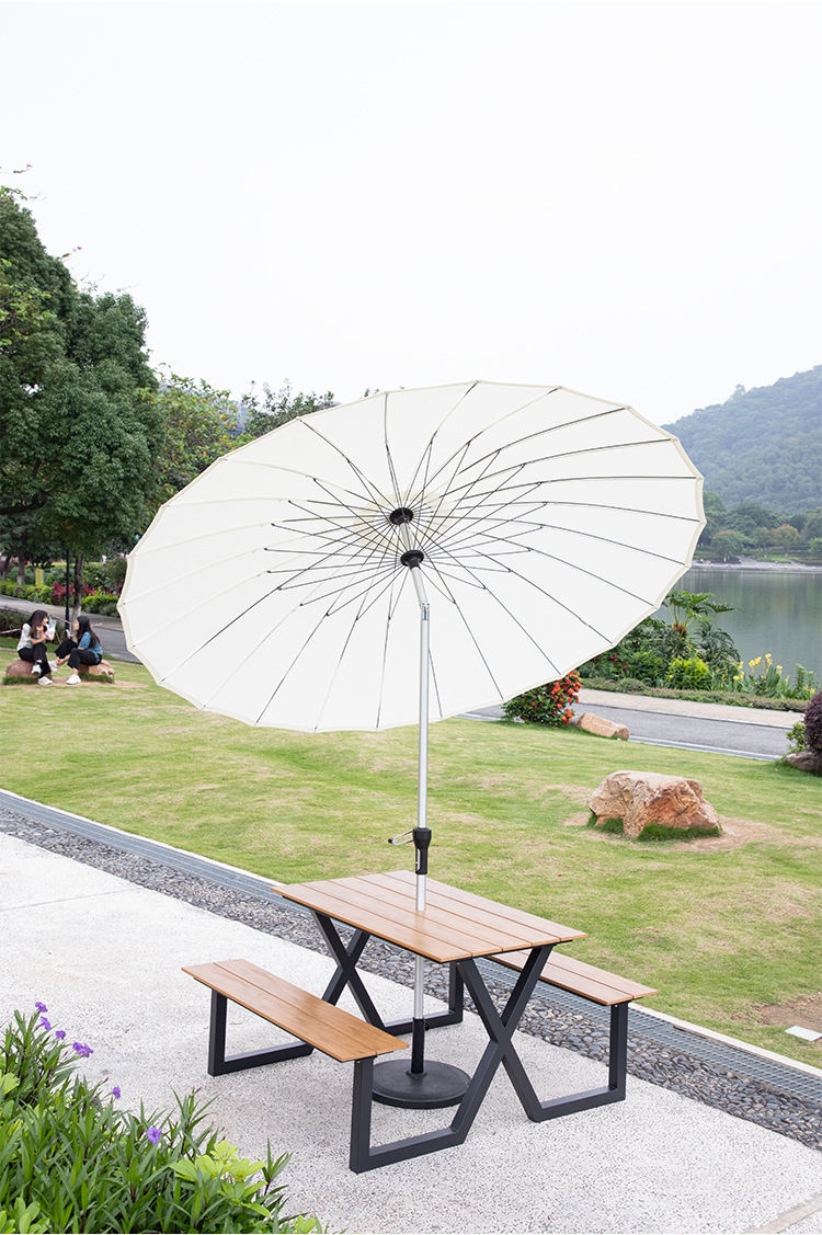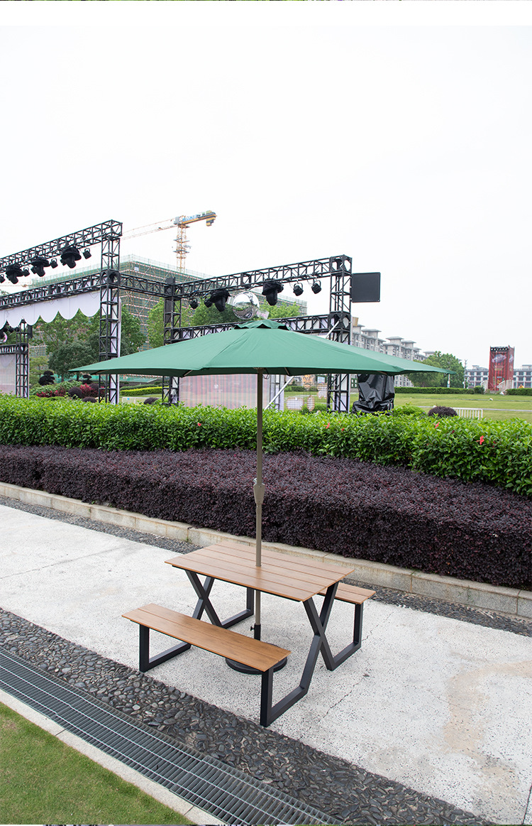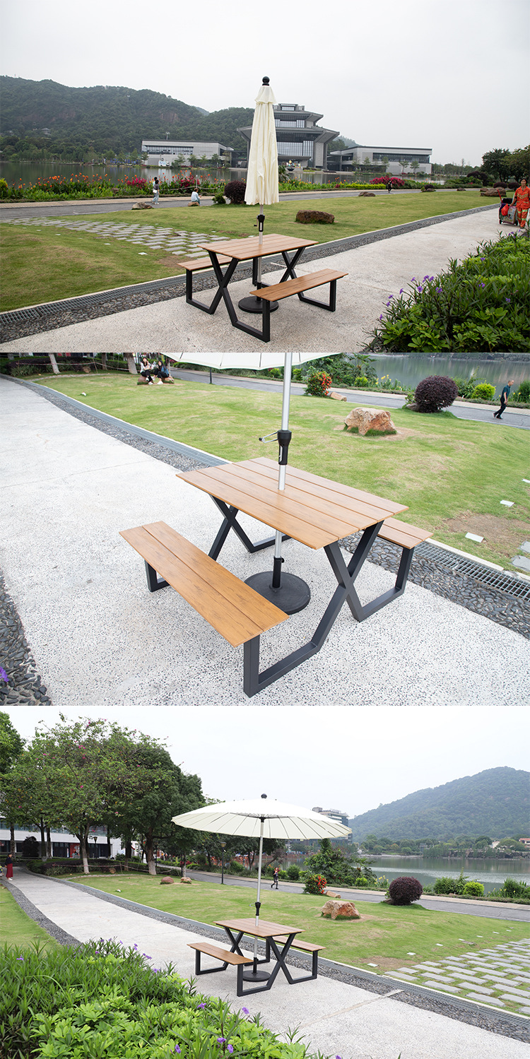야외 원피스 테이블과 의자 조합 안뜰 벤치 문학 여행 명승지 상업 필드 부식 방지 목재 야외 속성 테이블과 의자 우산