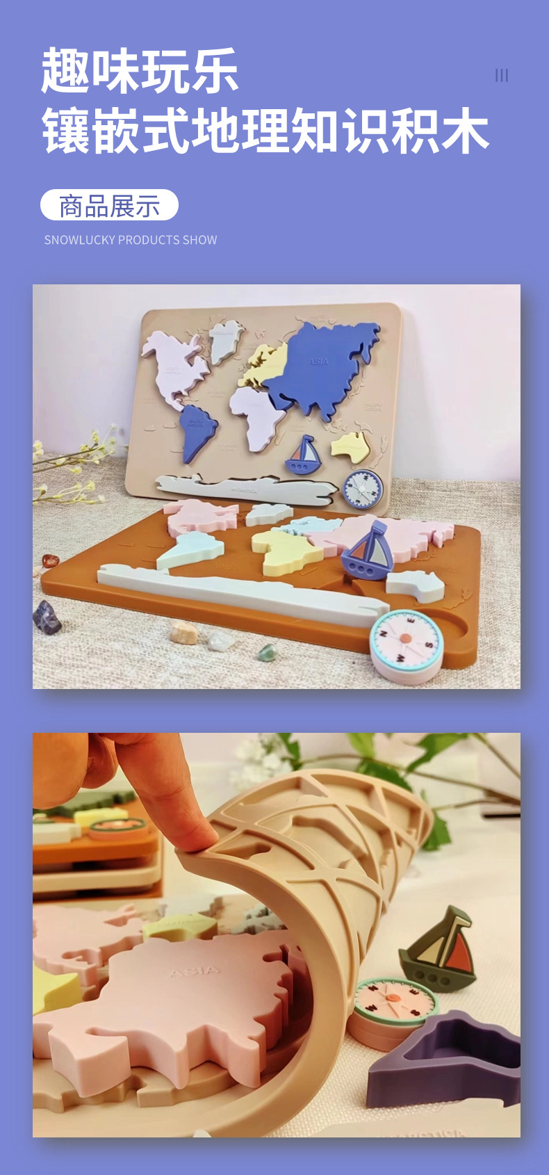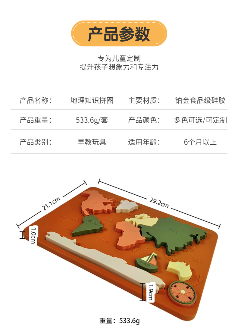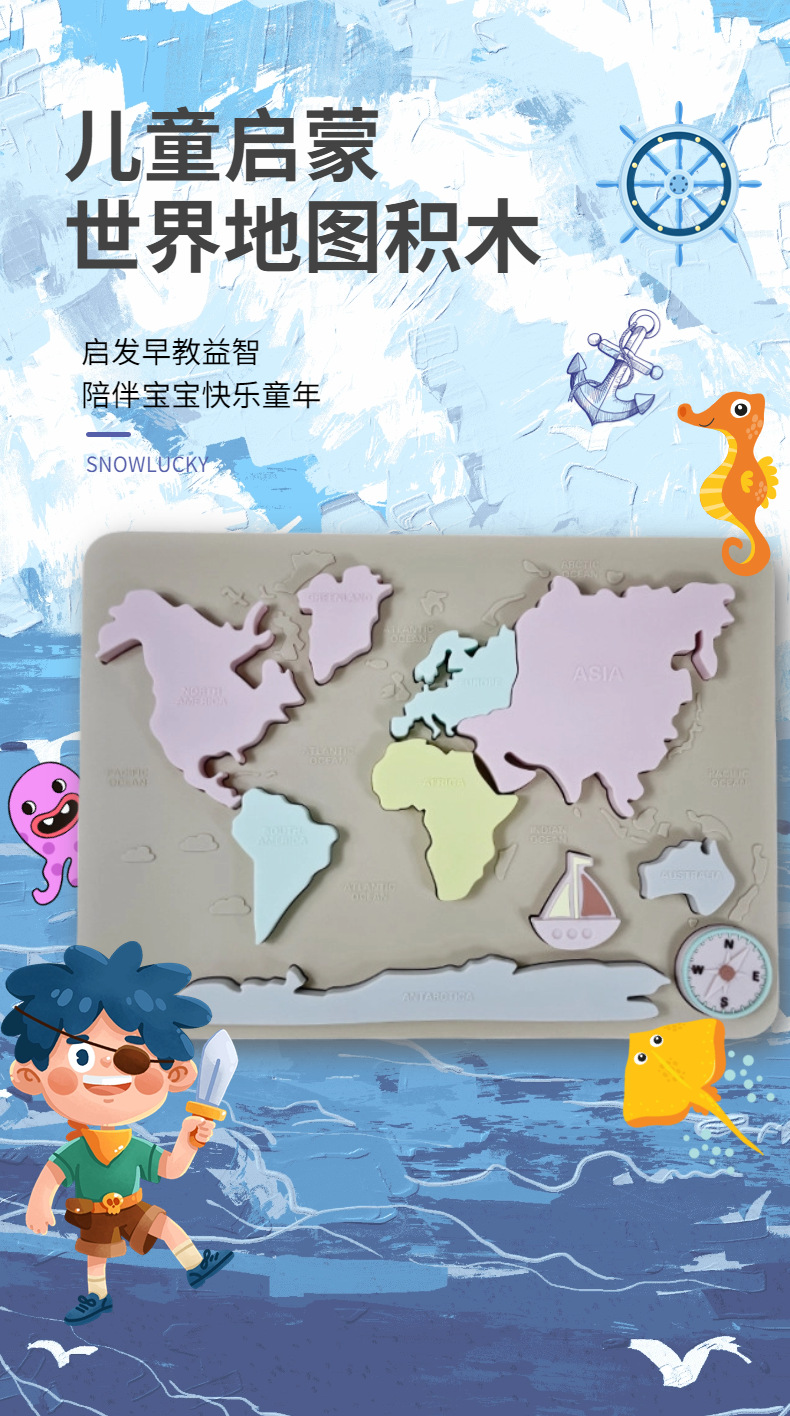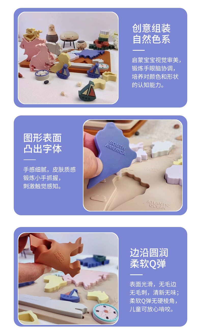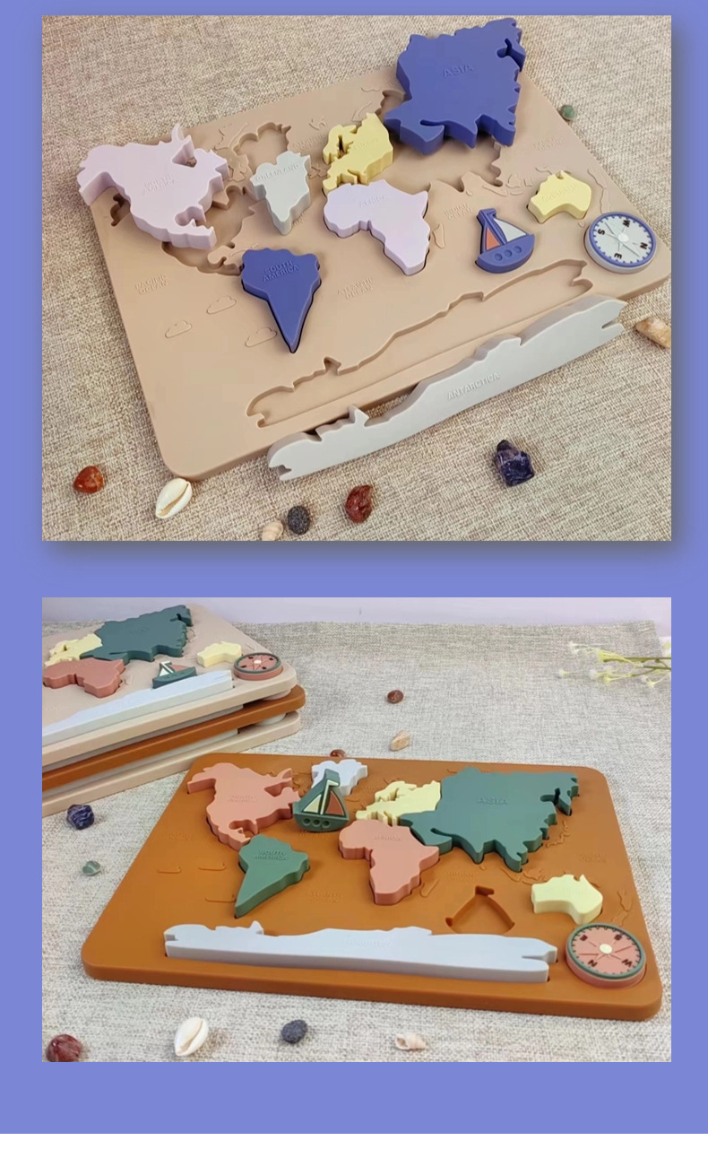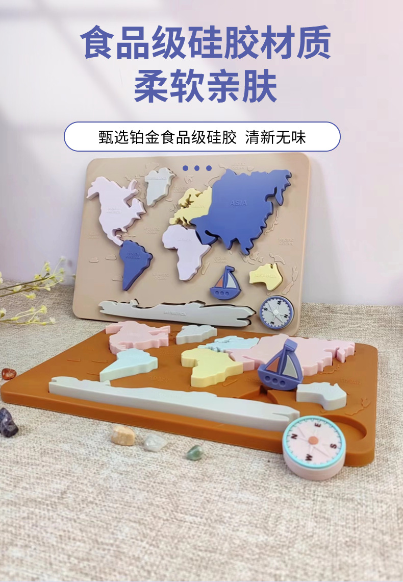 음식 플래티넘 실리콘 크리 에이 티브 어린이 지리 및 문화 교육 완구 치아 물린 음악을 연마하는 유아를위한 3 차원 퍼즐스토어 가기
