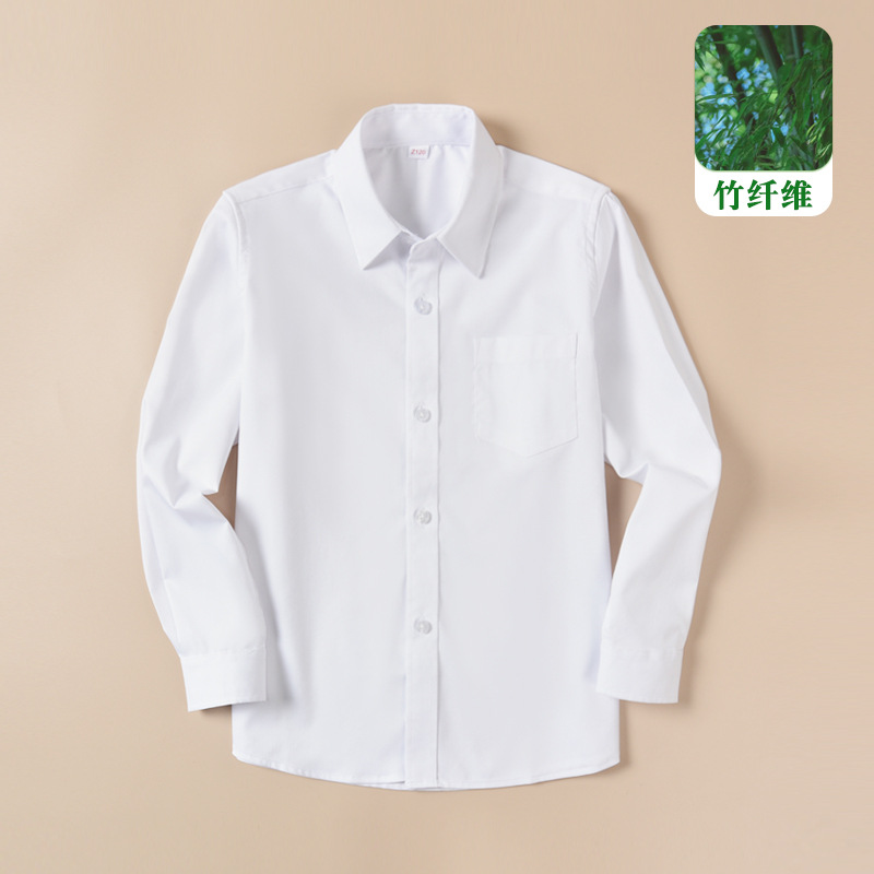 어린이 흰색 셔츠 남아 긴 소매 대나무 섬유 초등학생을위한 봄과 가을 교복