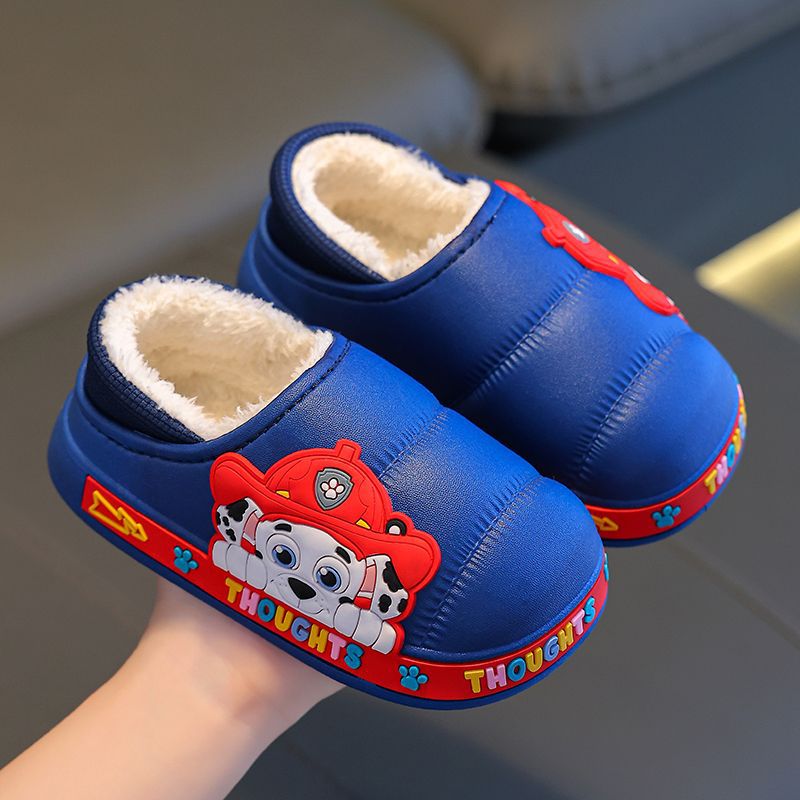강아지 팀 겨울 어린이 슬리퍼 남녀 공용 만화 캐릭터 미끄럼 방지 따뜻한 키즈 슬리퍼 외출용 면화 신발