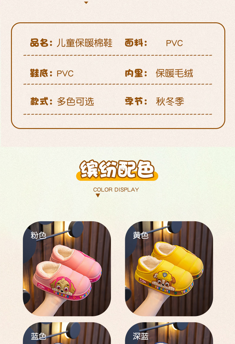 강아지 팀 겨울 어린이 슬리퍼 남녀 공용 만화 캐릭터 미끄럼 방지 따뜻한 키즈 슬리퍼 외출용 면화 신발스토어 가기