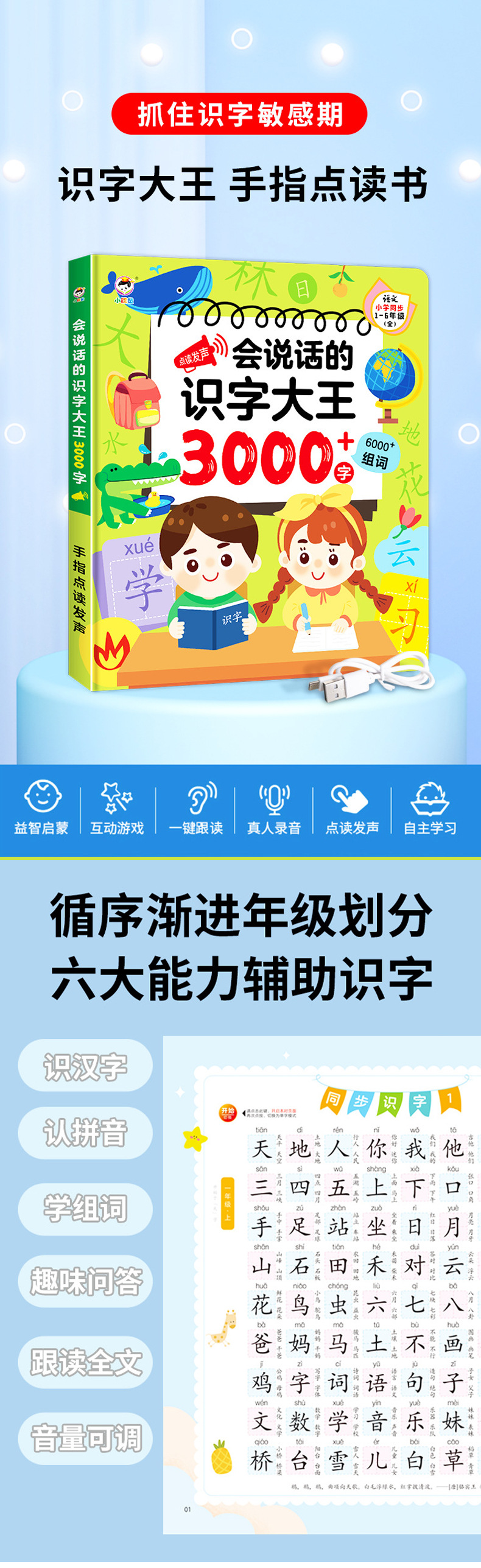 말하는 문맹 퇴치 왕 발음 포인트 독서 인지 백과 사전 언어, 수학 및 영어 어린이 계몽 오디오 북스토어 가기