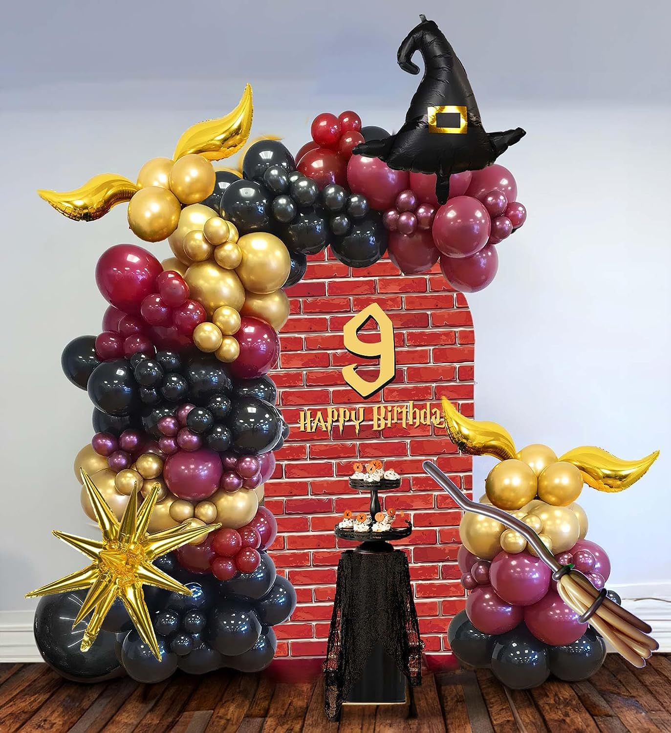 마법 마법사 학교 풍선 화환 세트 버건디 블랙 골드 모자 해리 포터 테마 생일스토어 가기