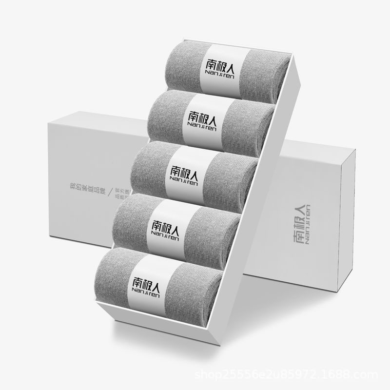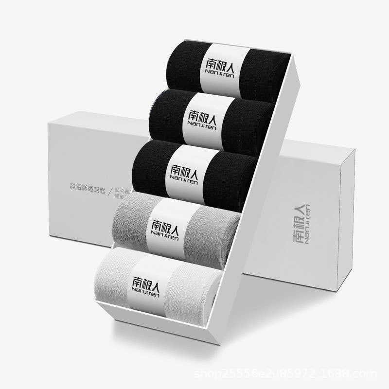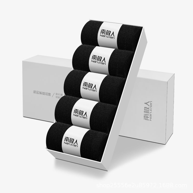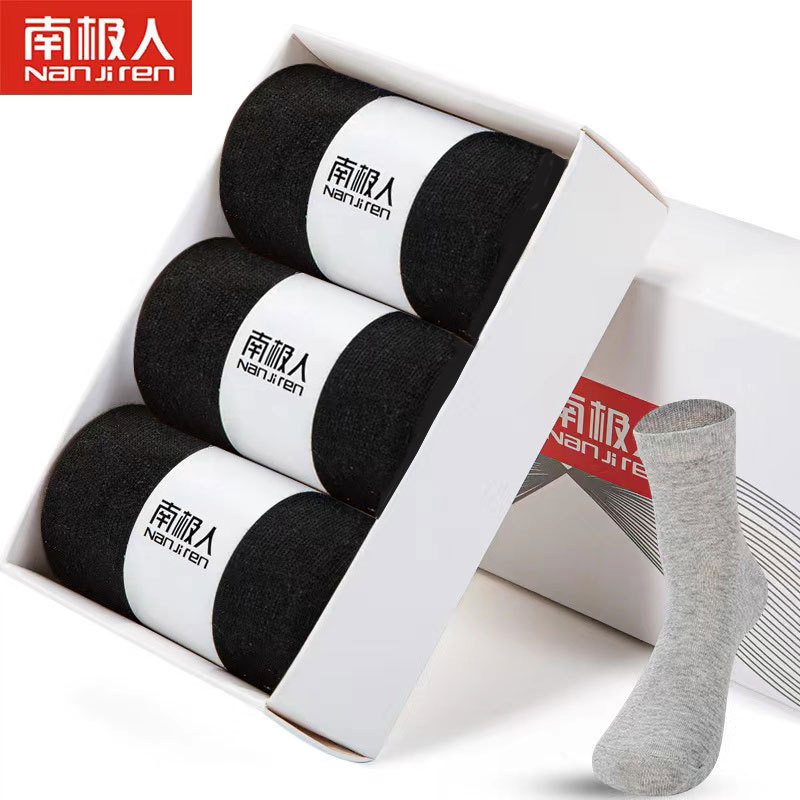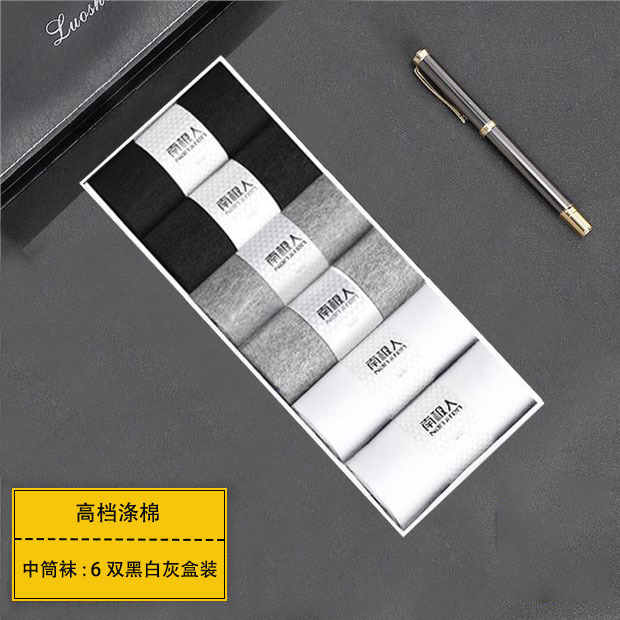 박스 포장된 남극인 중목 양말, 고품질 가을 겨울용 흑백 비즈니스 양말, 편안한 남성용 면 양말, 도매 판매스토어 가기
