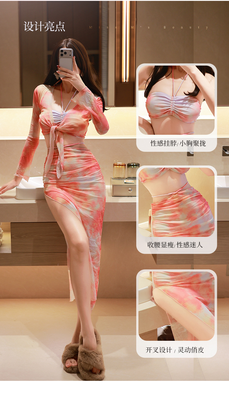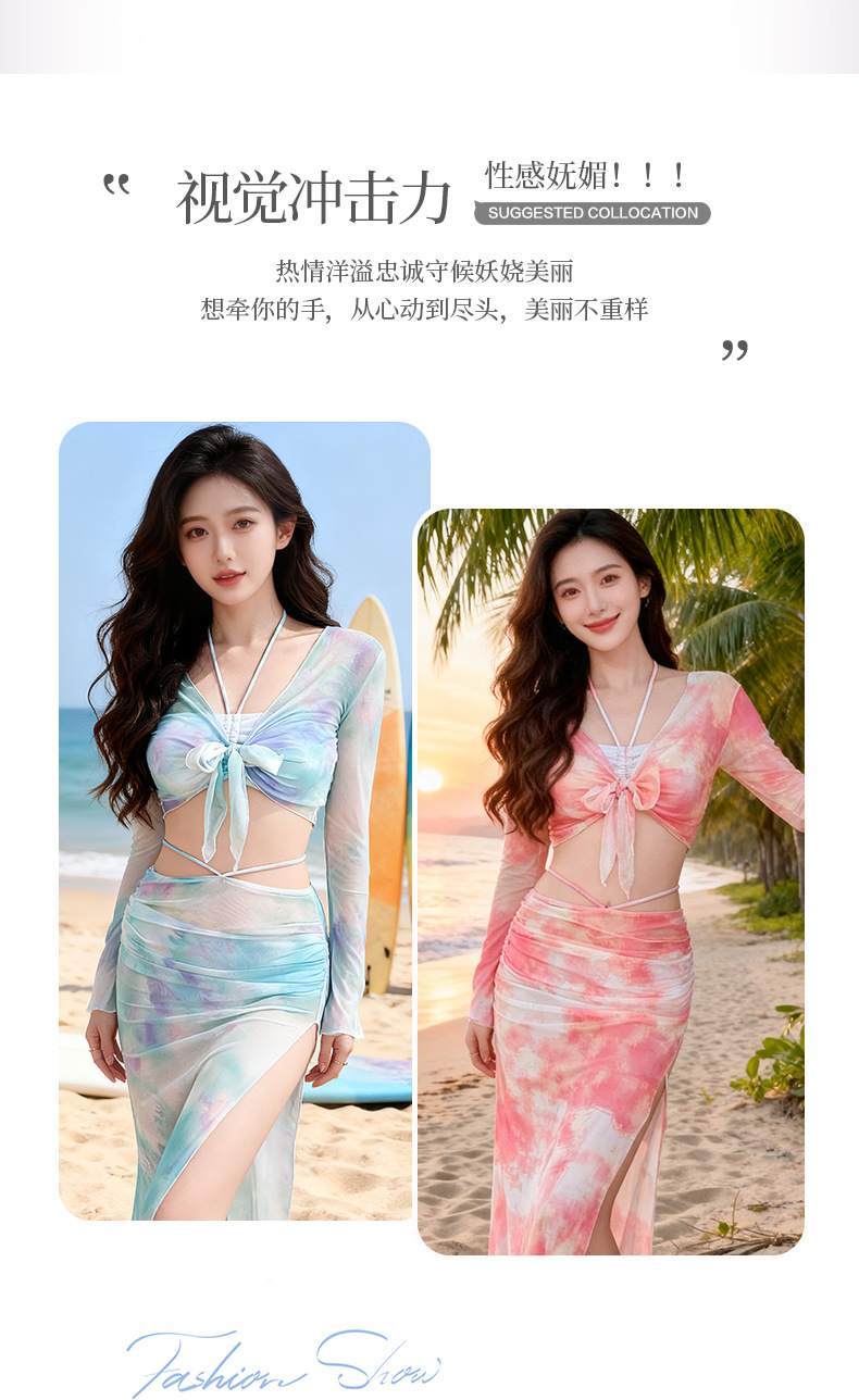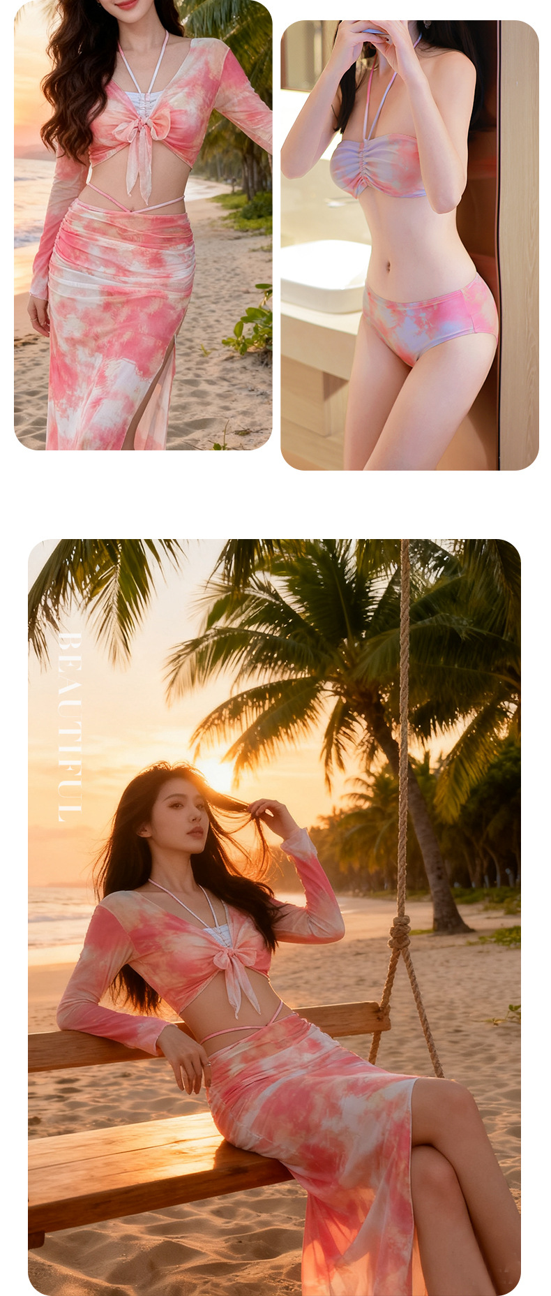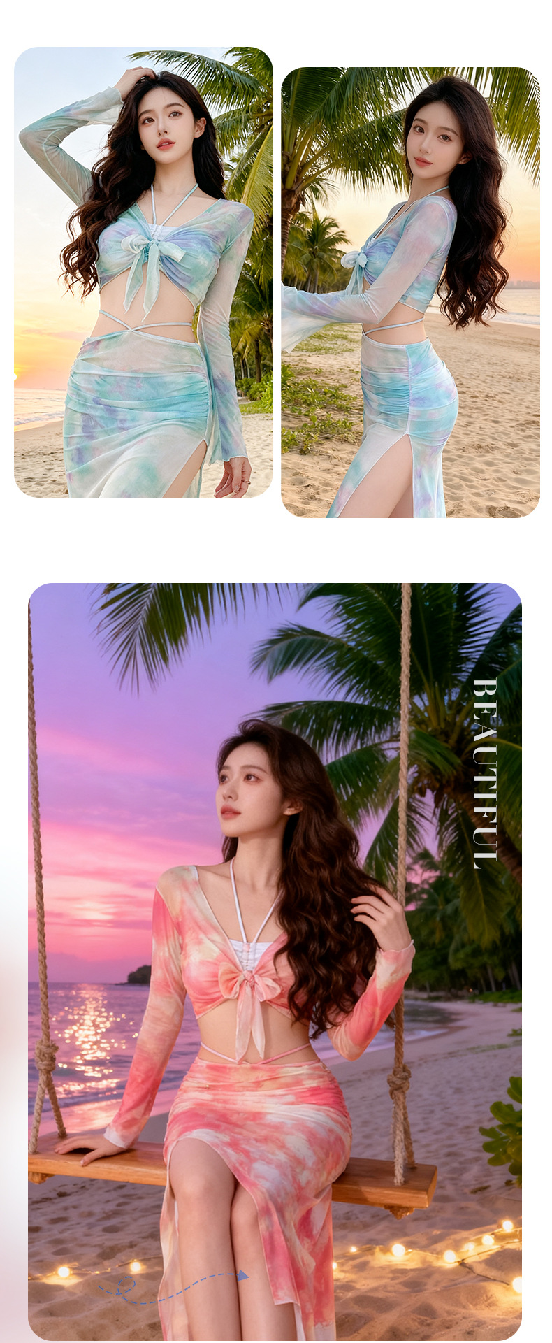 여성 온천용 3피스 수영복 2025 신형 섹시 비키니 플러스 사이즈 보수적인 배 커버 슬리밍 스플릿 수영복
