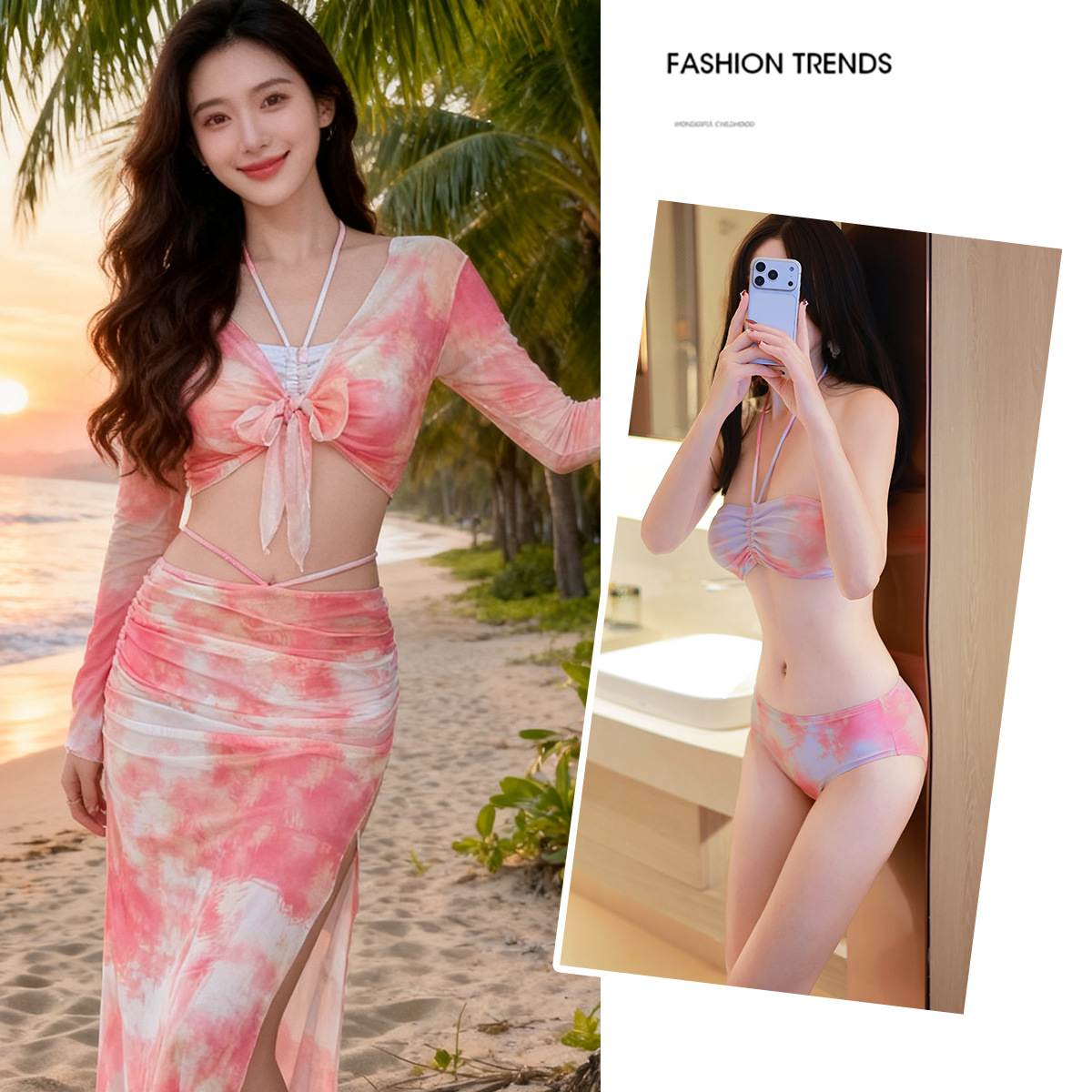 4피스 비키니 수영복 여성 온천용 20256 스타일 섹시 비키니 대형 사이즈 보수적 배 가리기 슬림 효과스토어 가기