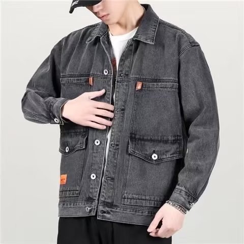 일본식 빈티지 남성용 멀티 포켓 데님 재킷 플러스 사이즈 느슨한 모든 매치 패션 브랜드 고급 내마모성 재킷 봄과 가을스토어 가기