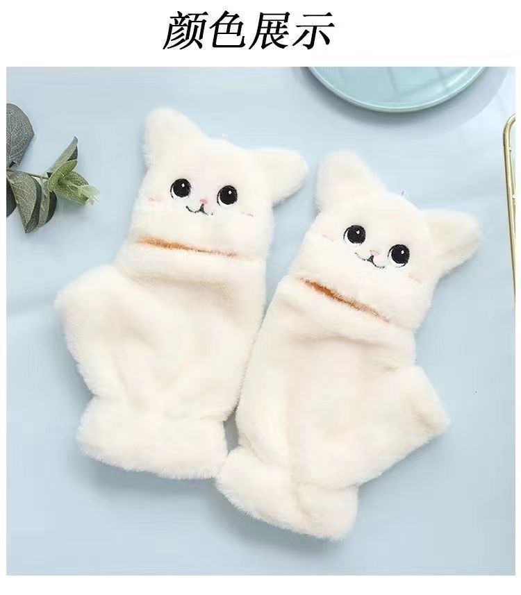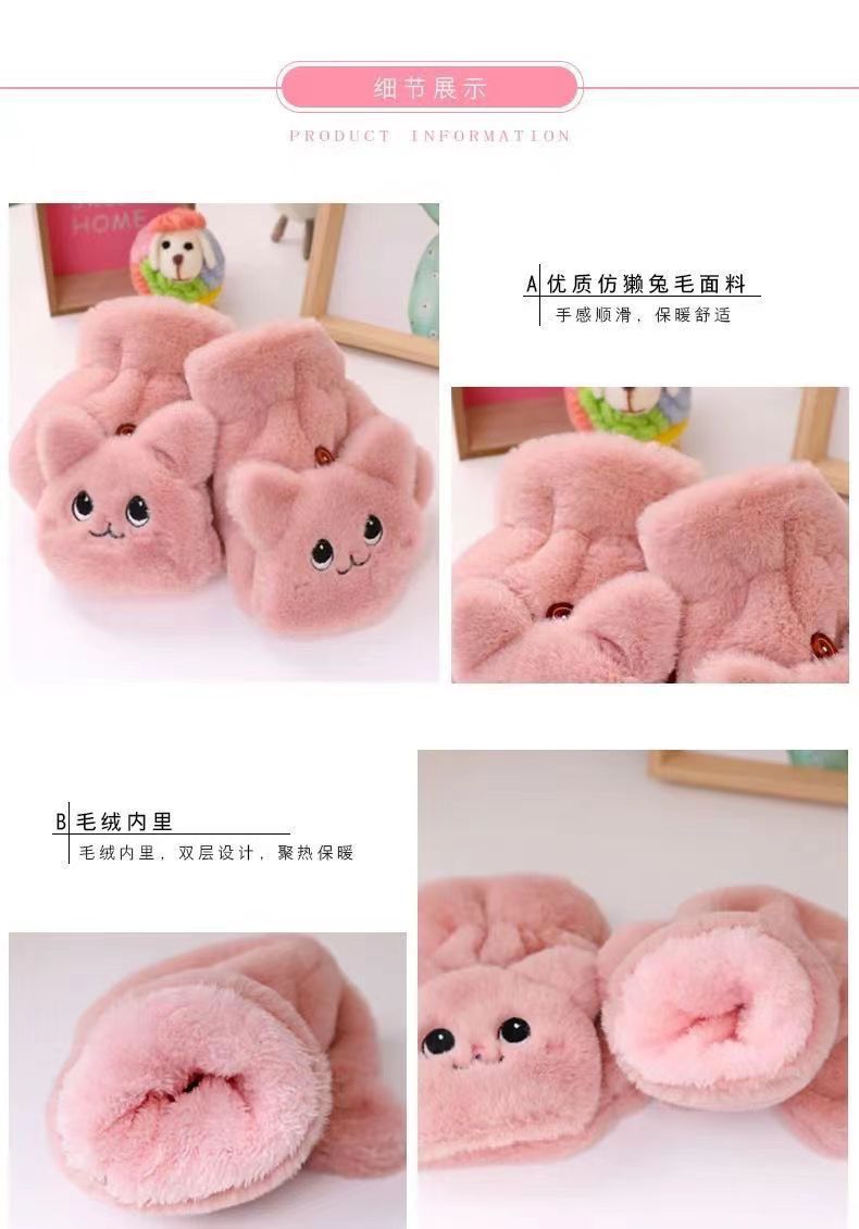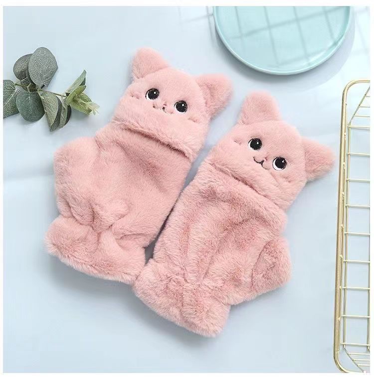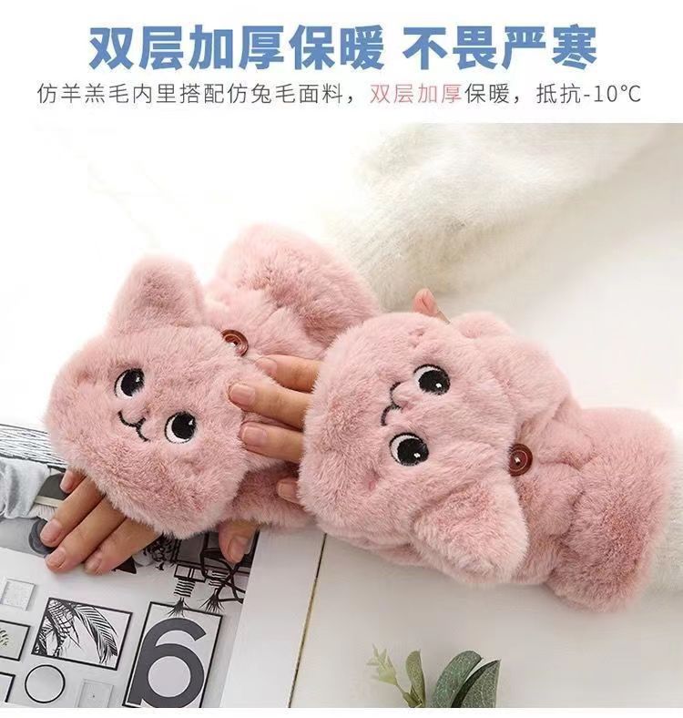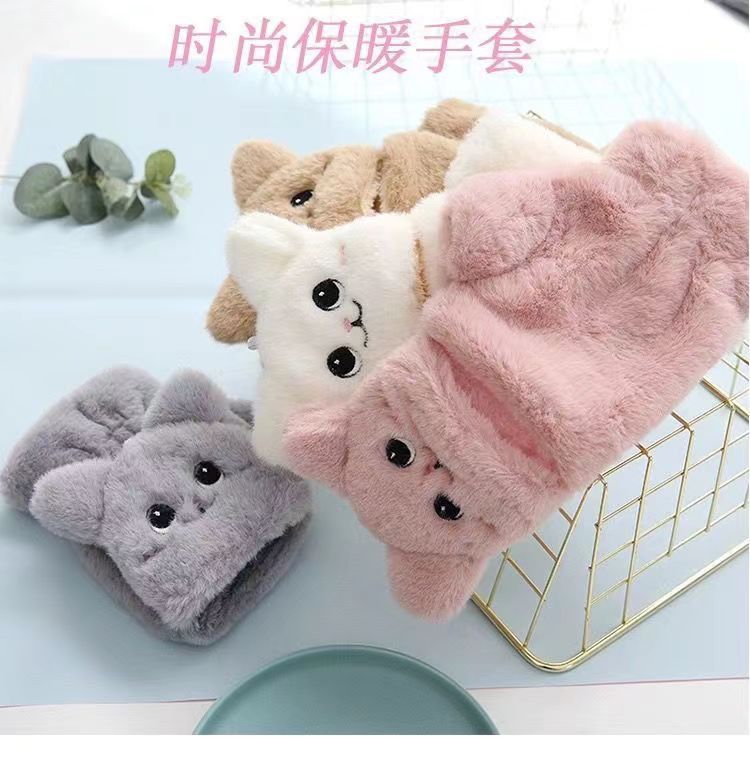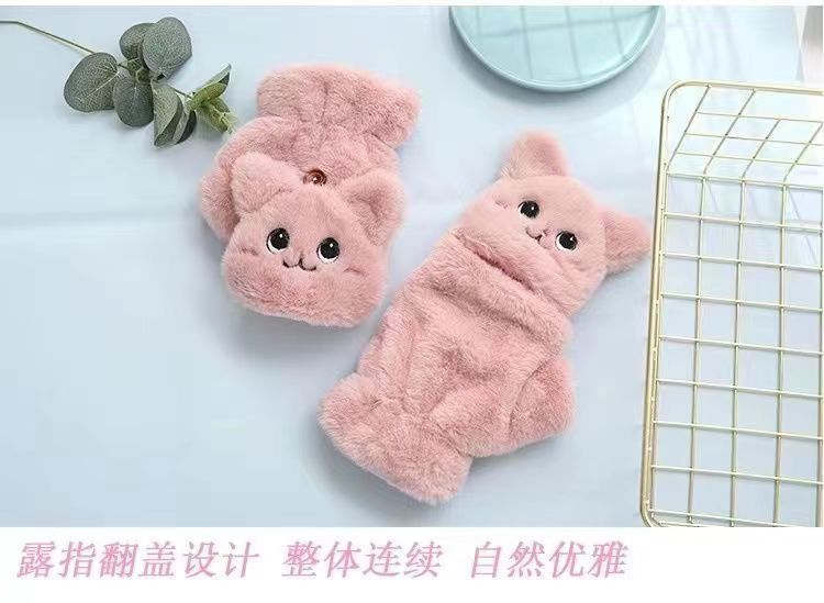장갑 겨울 여자의 귀여운 한국 스타일 플립 고양이 겨울 장갑 여자의 겨울 부드러운 소녀 슈퍼 귀여운