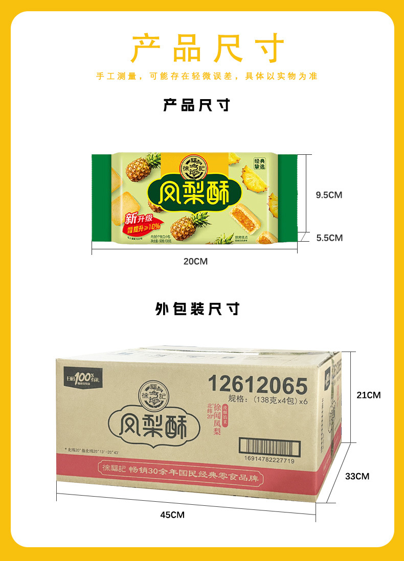 쉬푸지 파인애플 케이크 138g 과자 영양가 있는 휴대용 아침식사 간식 애프터눈 티 한박스 도매스토어 가기