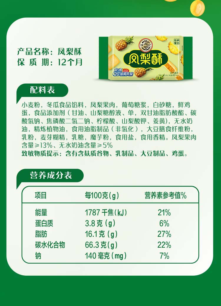 쉬푸지 파인애플 케이크 138g 과자 영양가 있는 휴대용 아침식사 간식 애프터눈 티 한박스 도매
