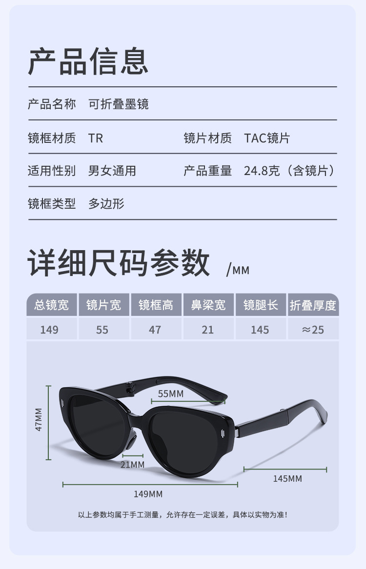 접이식 선글라스 여성용 자외선 차단 여름 간단한 유행 경량 접이식 선글라스 얼굴 작은 접는 안경
