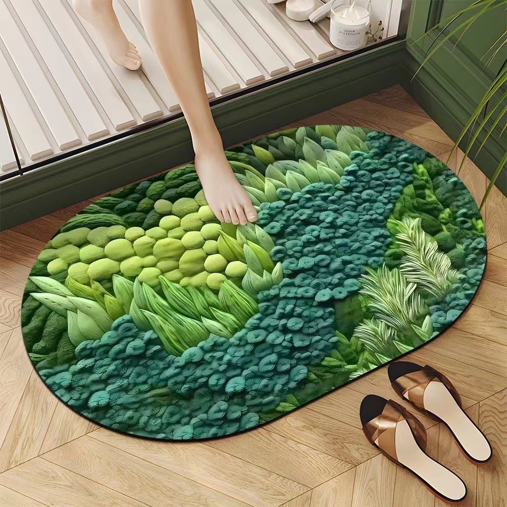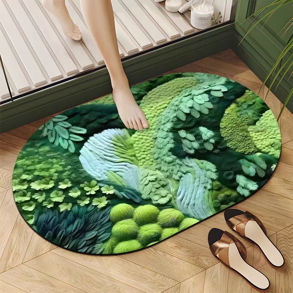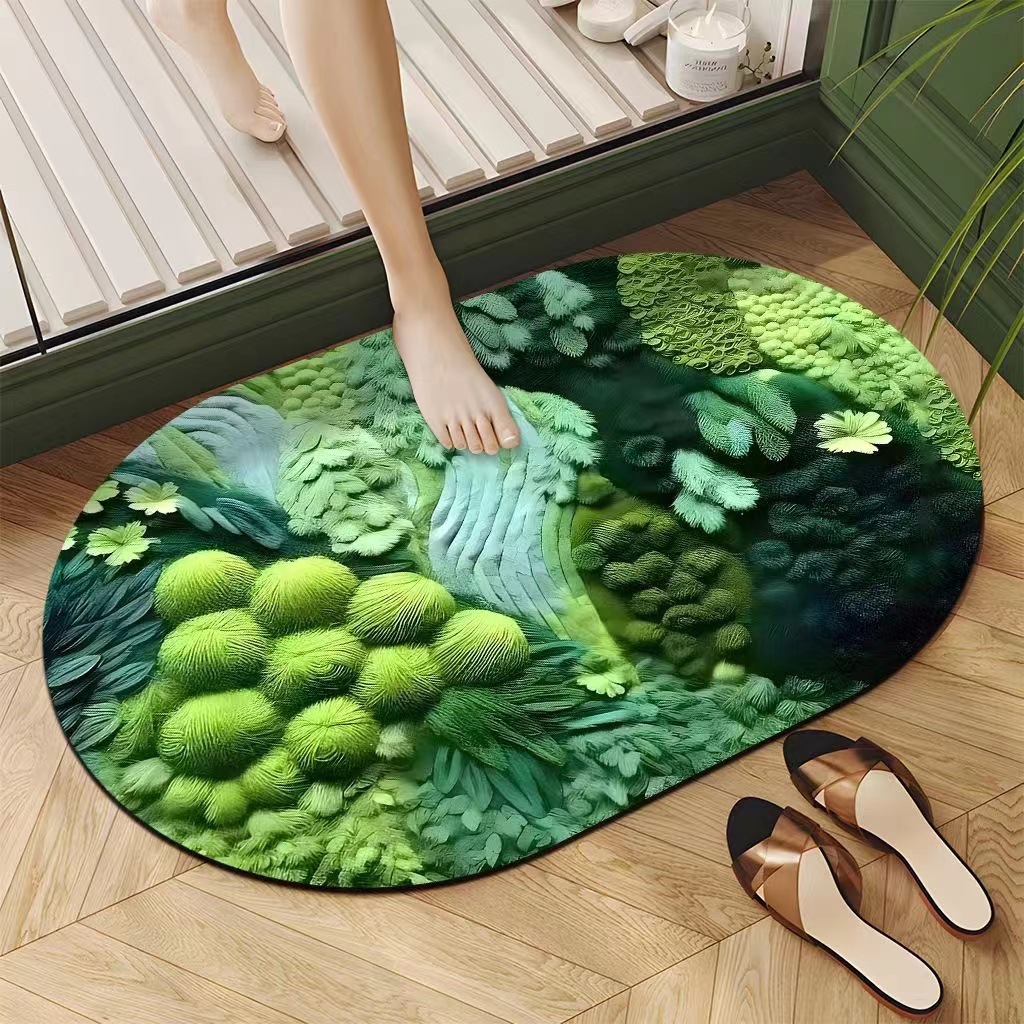 새로운 비주얼 3D 가정용 흡수성 미끄럼 방지 욕실 발 매트 화장실 규조 진흙 매트 카펫 크로스 보더