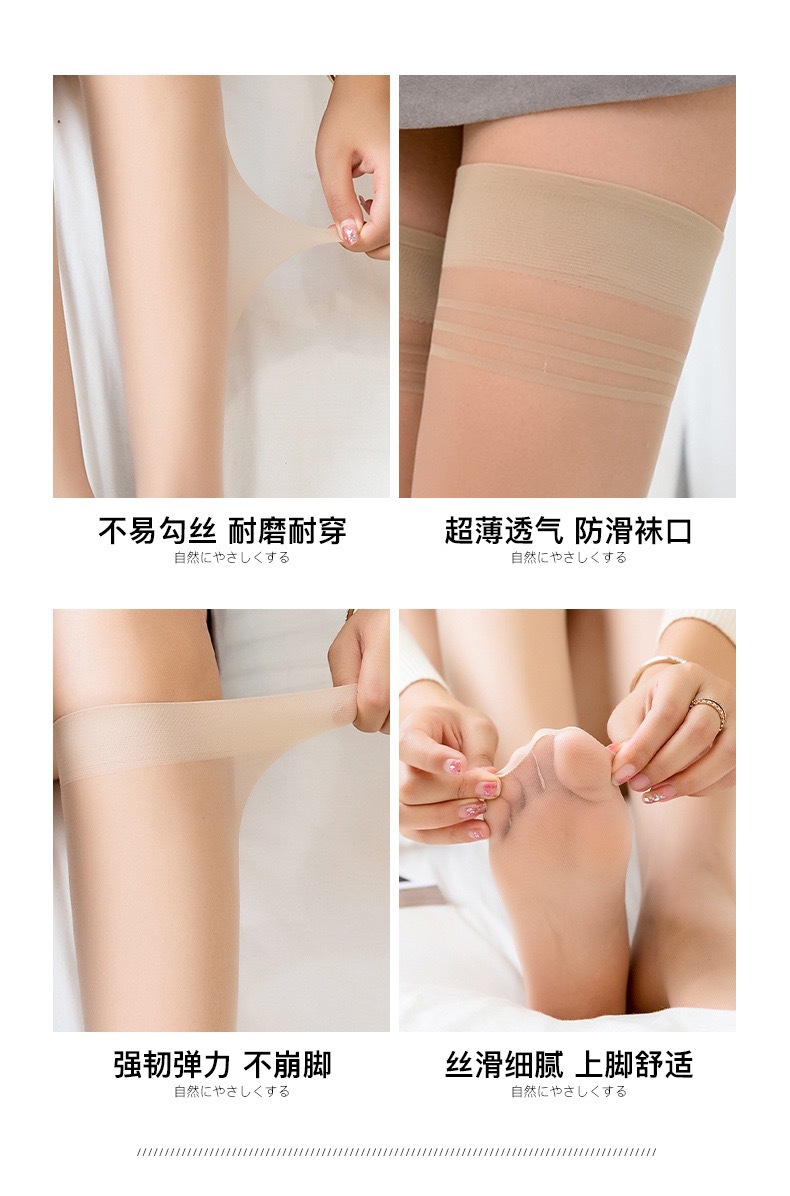 여름 초박형 스타킹 스타킹 블랙 반 미끄럼 방지 코어 스핀 실크 안티 후크 피부 색상 무릎 높이 스타킹 제조 업체 도매스토어 가기