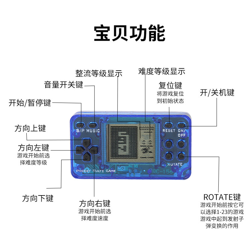 미니 휴대용 게임 기계 클래식 테트리스 만화 귀여운 키 체인 게임 기계 교수형 장식품 어린이 선물스토어 가기