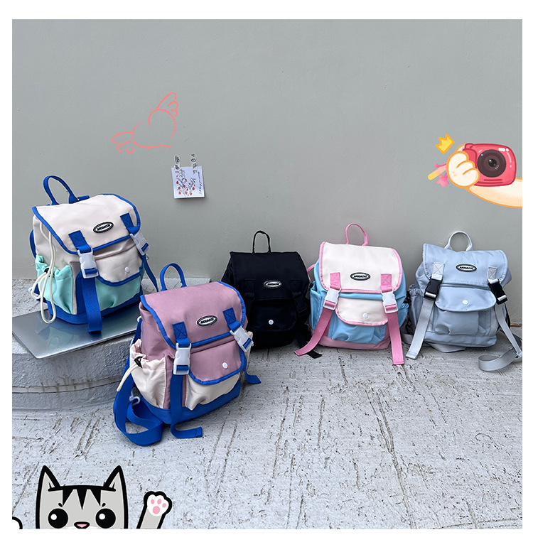 트렌디 한 한국 어린이 배낭 패션 대비 색상 소년과 소녀 부담 감소 작은 배낭 유치원 빅 클래스 책가방스토어 가기