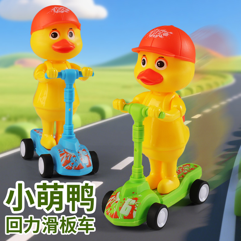 • 푸시백 스케이트보드 작은 귀여운 오리 블루