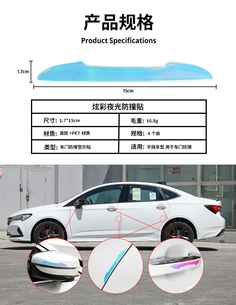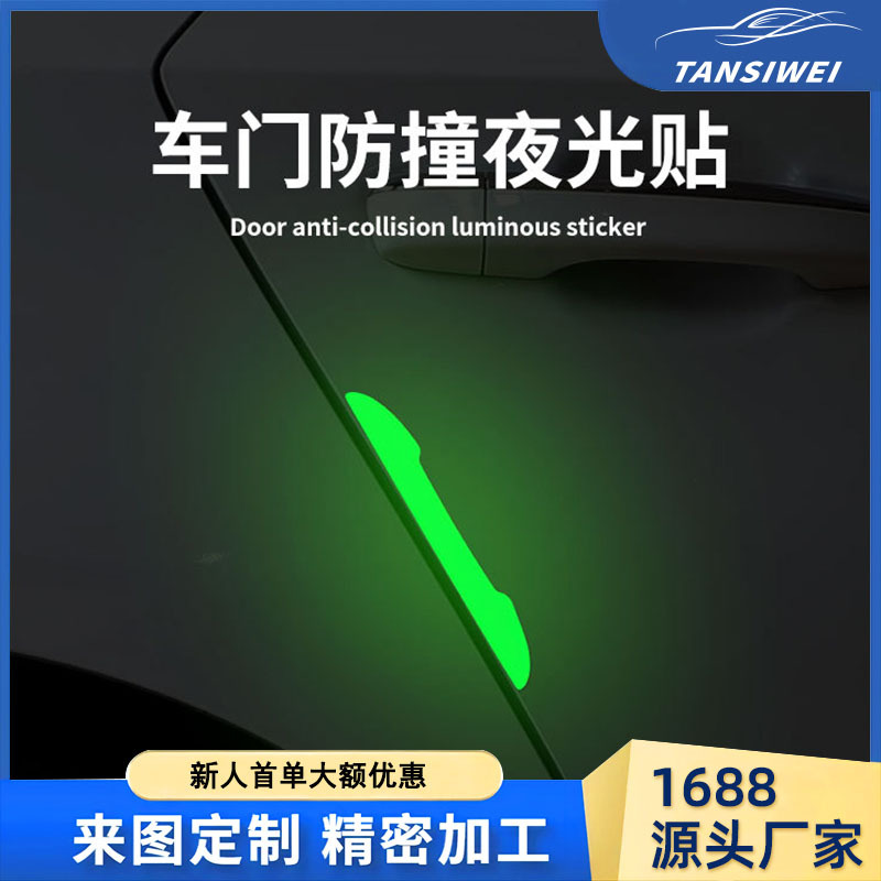 공장 직접 판매 새로운 자동차 충돌 방지 발광 스티커 긁힘 방지 발광 도어 장식 스티커 백미러 보호 형광 스티커스토어 가기