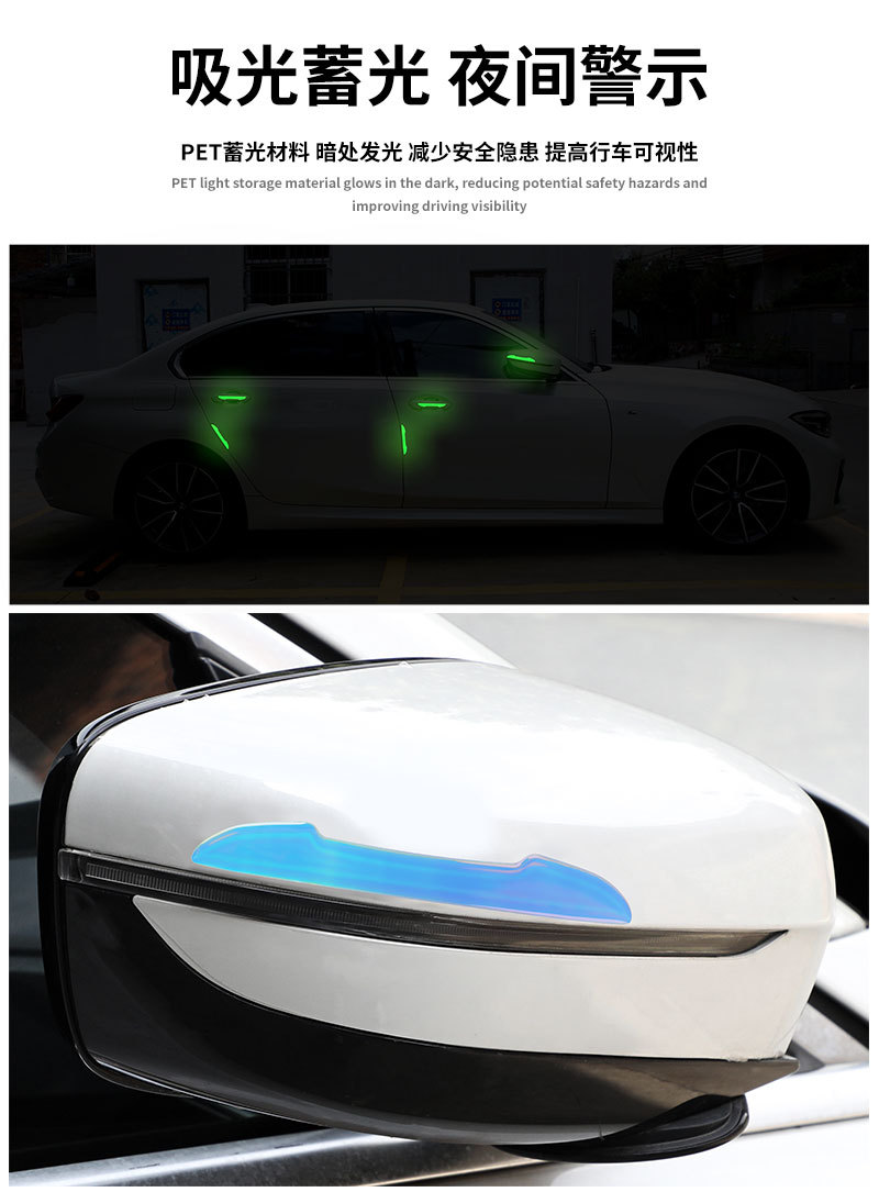 공장 직접 판매 새로운 자동차 충돌 방지 발광 스티커 긁힘 방지 발광 도어 장식 스티커 백미러 보호 형광 스티커